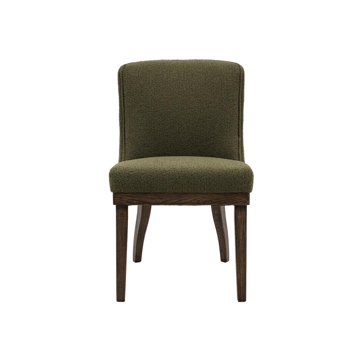The gently curved backs and comfortable seats offer both style and support, while the elegant wooden legs complete the sophisticated look. Perfect for creating a cosy yet contemporary atmosphere, these bouclé dining chairs add a touch of traditional charm with a modern twist to your dining space. Product Details:• Set of 2• Upholstered in a rich textured boucle fabric• Dark stained grained solid oak legs • Partial assembly required• 1 year manufacturers warranty. Product Composition - Solid Oak 35% / Plywood 25% / Polyester 25% / Foam 13% / Polyfibre 2%Product Dimensions - 53 cm x 92 cm x 101 cm, Weight 25 kg Seat height 47.5cm. Back height 45cm. Clearance to floor 39cm. Package Dimensions - 101 cm x 92 cm x 53 cm, Weight 25 kg. This product will be dispatched by one of our trusted suppliers. You’ll be contacted by their selected courier about your delivery. Please note: this product cannot be delivered to all Offshore Islands, Northern Ireland or Republic of Ireland.
