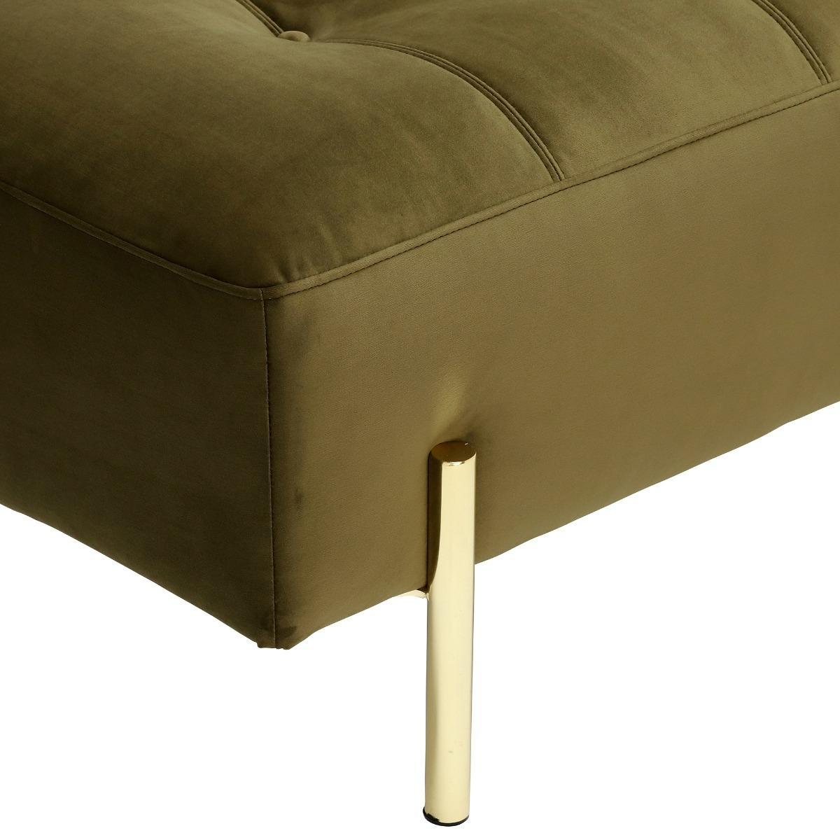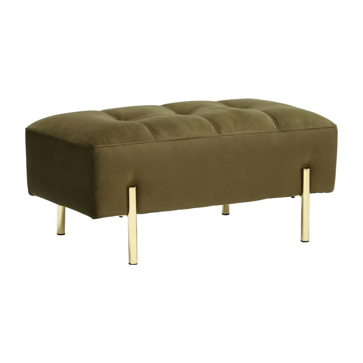I love this footstool because of its contemporary, streamlined design and versatile colour that can complement a range of interiors, from minimalist to more eclectic schemes. Its compact size makes it perfect as a footrest, additional seating, or even as a statement piece in a hallway or bedroom. The gold legs add a touch of elegance without feeling overly formal, making it suitable for both modern and vintage-inspired spaces. Practical styling tips include pairing it with a cosy sofa in neutral tones to add a pop of colour, or combining it with other metallic accents for a cohesive look. It’s also an easy way to introduce a bit of luxe to everyday living while maintaining functionality.