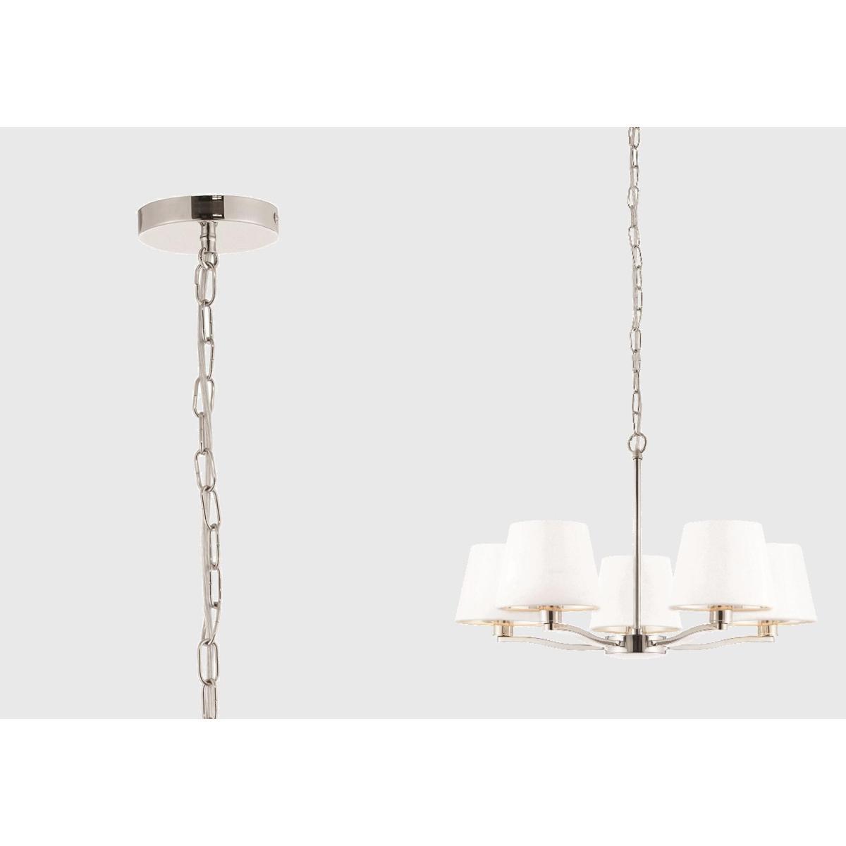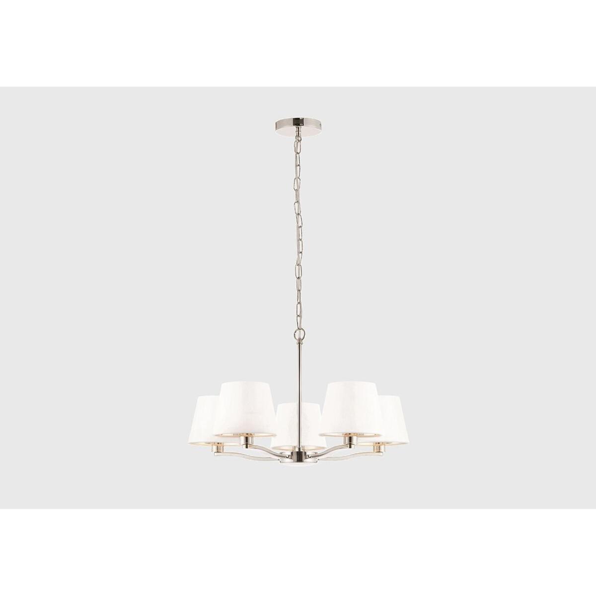 Take your living space to the next level with the clean-lined Tristan, a design that exudes quality and visual appeal. It features a metal chain and five fixed arms with a sophisticated silver finish that provide a clean contrast to its five white shades, with reflective silver lining for a bright glow. The sleek look of Tristan and its natural elegance make it perfect for traditional decors and versatile enough to dress any living room, dining room or bedroom. Discover the Tristan Lighting Range.
