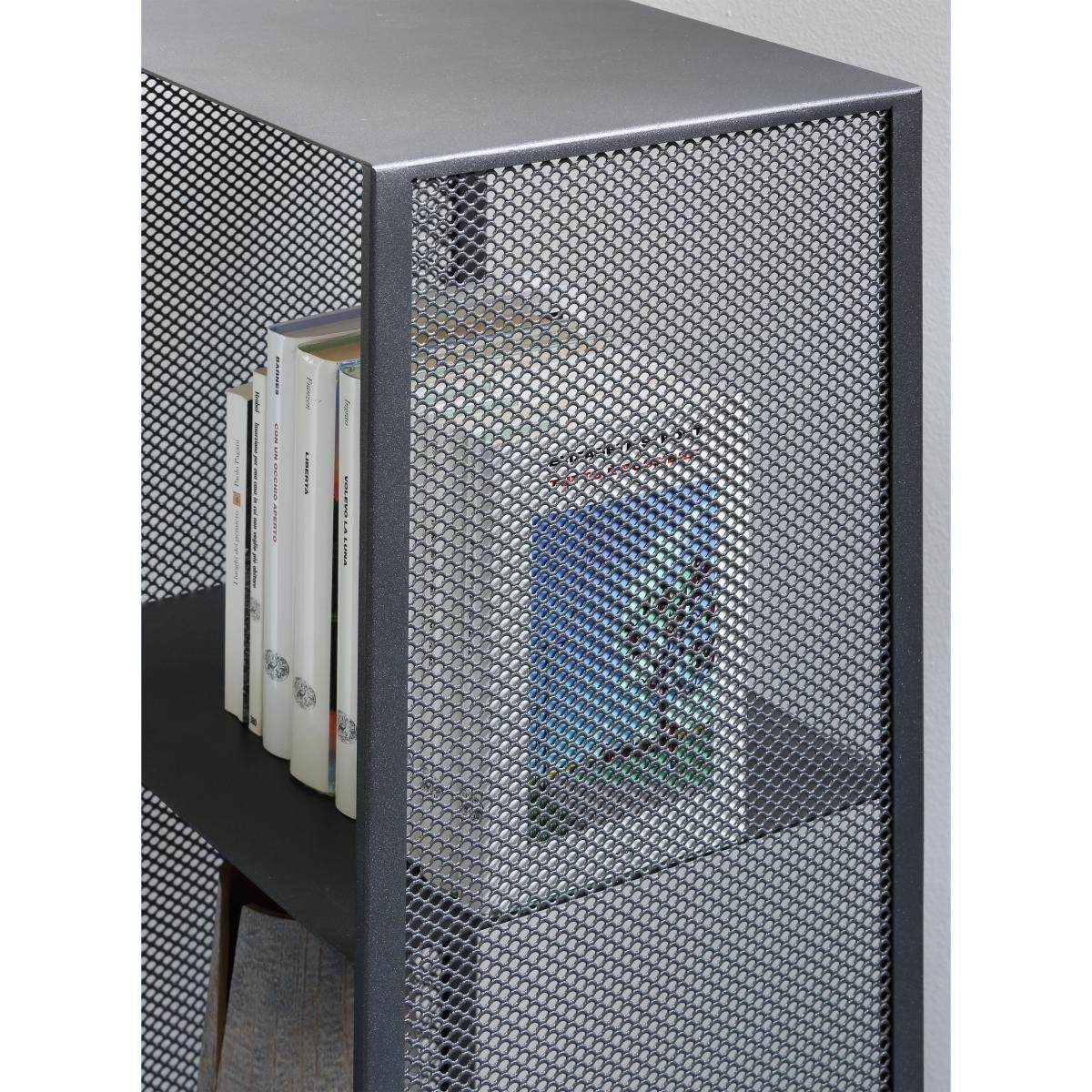 Made of steel, the Tristano collection combines solid surfaces and openwork surfaces. The solid sheet sits next to steel mesh which forms an ethereal, elegant texture, playing with transparency. Depending on the observer’s point of view, the metal mesh lets light and looks through, or on the contrary, prevents it. This simple, clean column shelf is a modern embodiment of industrial aesthetics. This piece of furniture completely corresponds to the philosophy of the ZEUS brand: creating items which are simple, authentic, functional and economic. A quest for the essential achieved by total expertise in materials and incomparable skill to work metal. Zeus furniture is made by skilled craftsmen in Italy, near Modena. Each piece is made by hand: the metal is cut, assembled, welded and painted by hand. Each item is unique. Steel is a recyclable material and any metal scrap not used during manufacturing is recycled for re-use. Zeus furniture is built to last: highly durable, this furniture can be handed down from generation to generation.