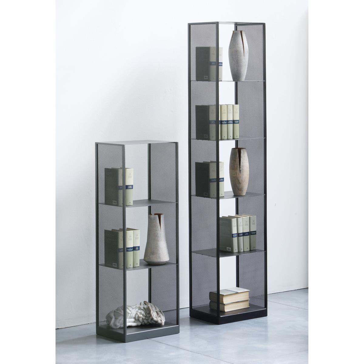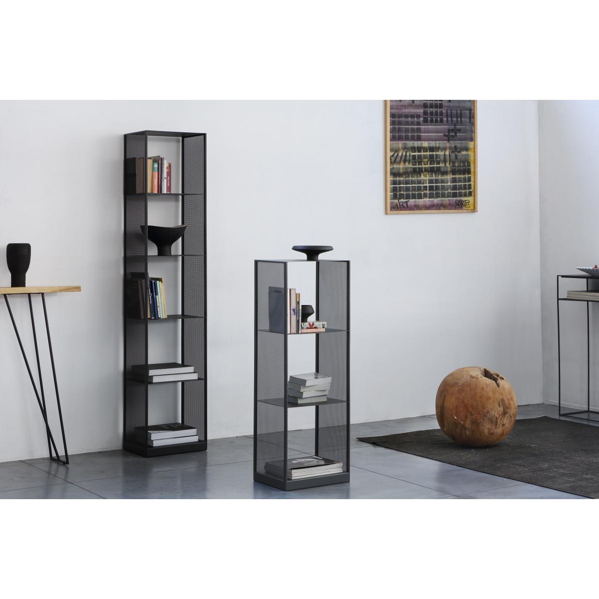 Made of steel, the Tristano collection combines solid surfaces and openwork surfaces. The solid sheet sits next to steel mesh which forms an ethereal, elegant texture, playing with transparency. Depending on the observer’s point of view, the metal mesh lets light and looks through, or on the contrary, prevents it. This simple, clean column shelf is a modern embodiment of industrial aesthetics. This piece of furniture completely corresponds to the philosophy of the ZEUS brand: creating items which are simple, authentic, functional and economic. A quest for the essential achieved by total expertise in materials and incomparable skill to work metal. Zeus furniture is made by skilled craftsmen in Italy, near Modena. Each piece is made by hand: the metal is cut, assembled, welded and painted by hand. Each item is unique. Steel is a recyclable material and any metal scrap not used during manufacturing is recycled for re-use. Zeus furniture is built to last: highly durable, this furniture can be handed down from generation to generation.