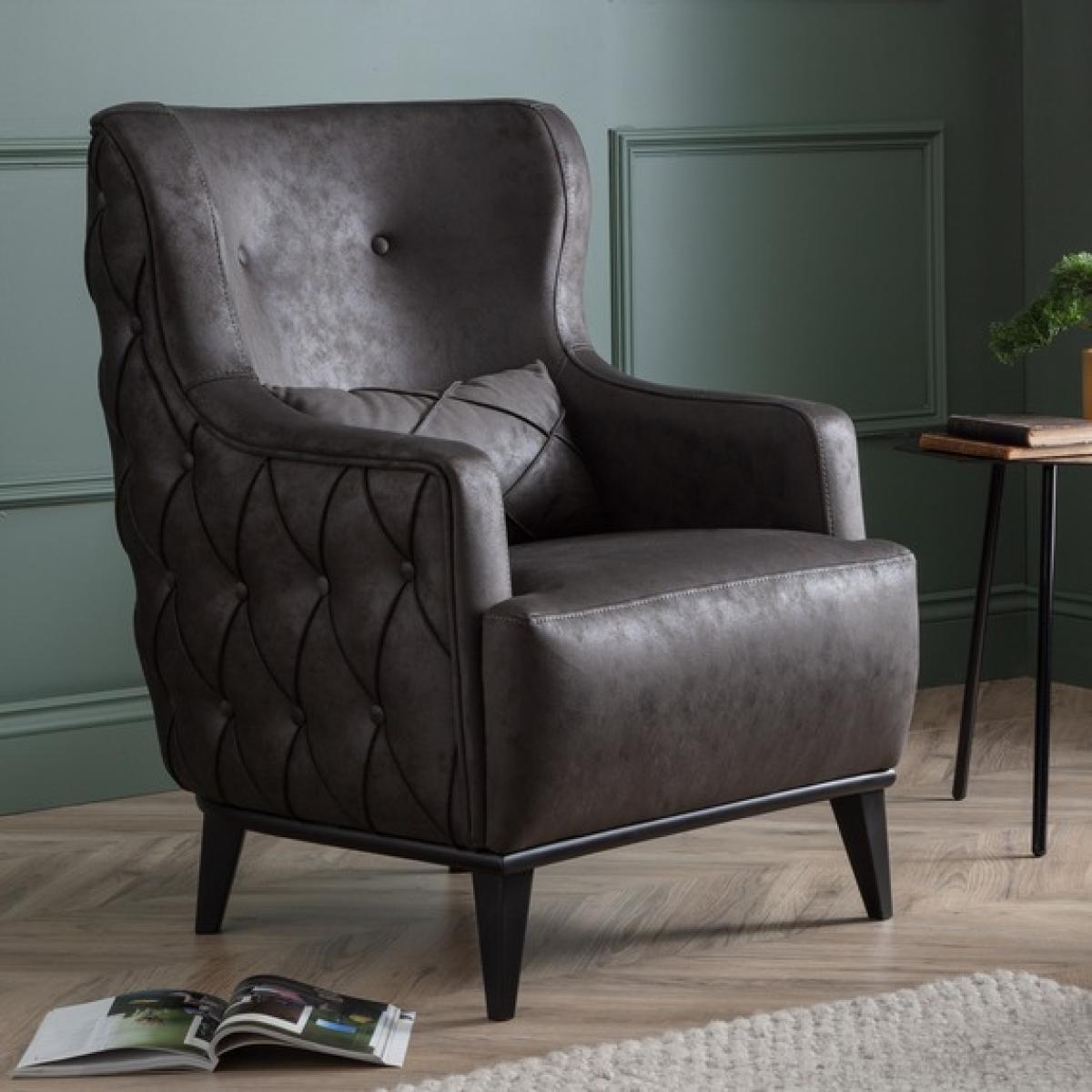 This wingback armchair is a versatile piece well-suited for both classic and contemporary interiors thanks to its modern faux leather in a sophisticated charcoal hue. I love its clean lines and subtle quilting detail, which add a touch of elegance without feeling overly ornate. It works beautifully in cosy living rooms, reading nooks, or home offices where comfort is key, but style remains a priority. Practical styling tips include pairing it with textured throws or cushions in neutral or muted colours to soften its look, and placing it alongside other dark woods or metals for a cohesive, stylish ensemble. Its durable faux leather also makes it an excellent choice for busy households or spaces prone to spills, offering both practicality and timeless appeal.