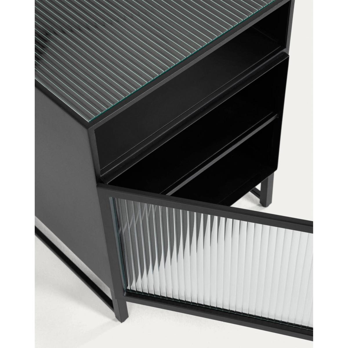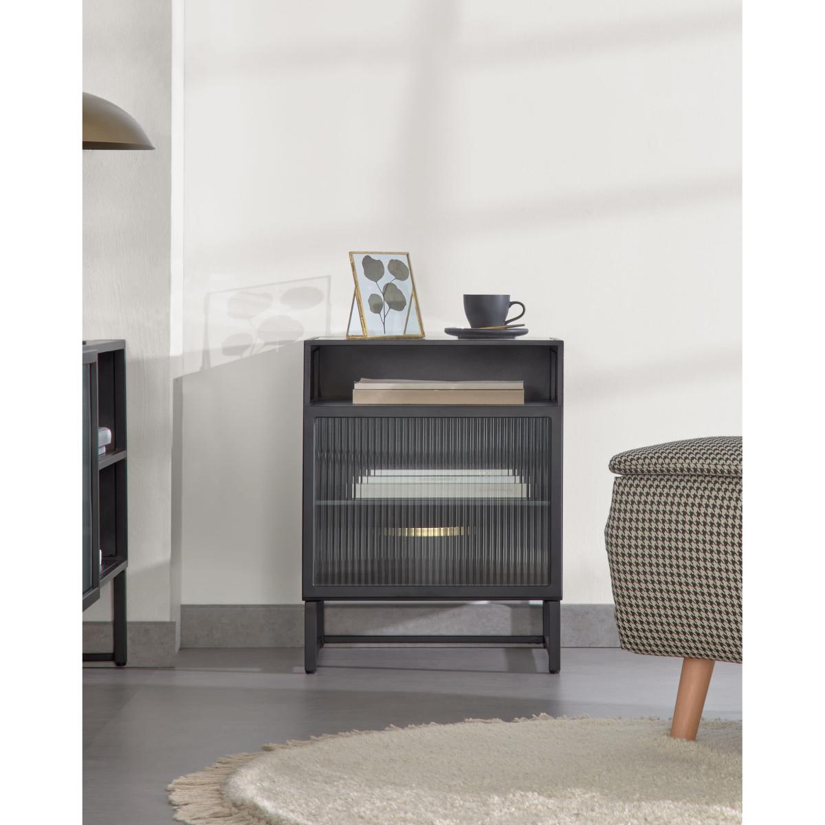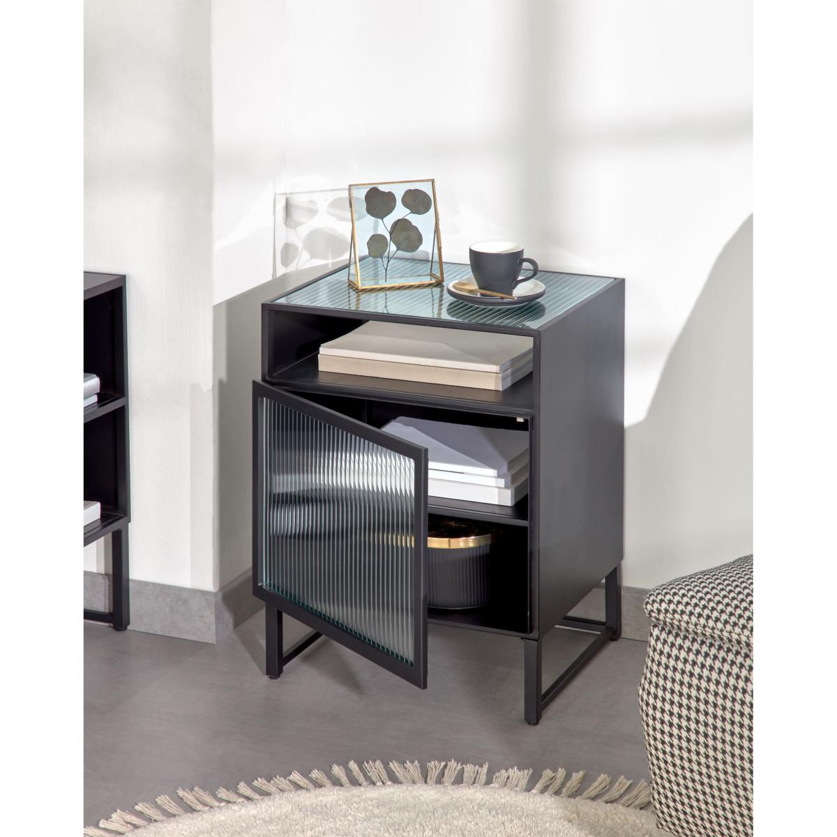 I’m a fan of the Trixie nightstand for its clean silhouette and textured glass door, which adds subtle depth without overwhelming a scheme. The slim metal legs keep it feeling light, and the concealed cubby plus open shelf make it easy to hide bedside clutter while keeping your essentials to hand. It works particularly well in modern, minimalist or industrial-inspired bedrooms - pair it with a matte-black lamp and a few hardcover books for a cohesive look. To style, tuck a charging tray inside the open shelf, top with a small plant or ceramic vase, and run cables neatly through the back so that your bedside stays tidy.