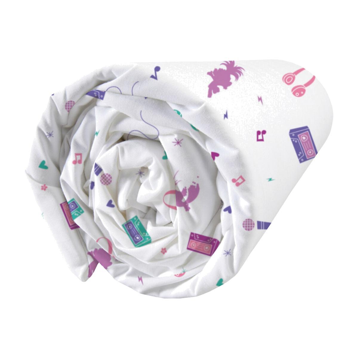 Trolls Music printed fitted sheet. Trolls are crazy, fun-loving creatures with magical, fluorescent up-combed hair. As Kings of Pop, for them, Music is Life! Team this fitted sheet with the rest of the bedding in the Trolls Music range. You can also mix and match it with different colours anddesigns from our other bedding ranges to suit your mood and add your own uniquestyle to the bedroom. Product Details. 100% cotton with Oeko-Tex® label, 57 threads/cm²: the higher the thread count, the higher the quality of the weave. Fitted sheet printed with little motifs. Washable at 60°C. This STANDARD 100 certified product by OEKO-TEX® - certificate no. CQ 1102/4 IFTH - follows a certified and controlled manufacturing process which is respectful of your skin. The STANDARD 100 by OEKO-TEX® is the first label that meets the needs of consumers in terms of human ecology. It guarantees the absence of harmful substances or those potentially presenting a risk to health. Size. Single: 90 x 190cm.