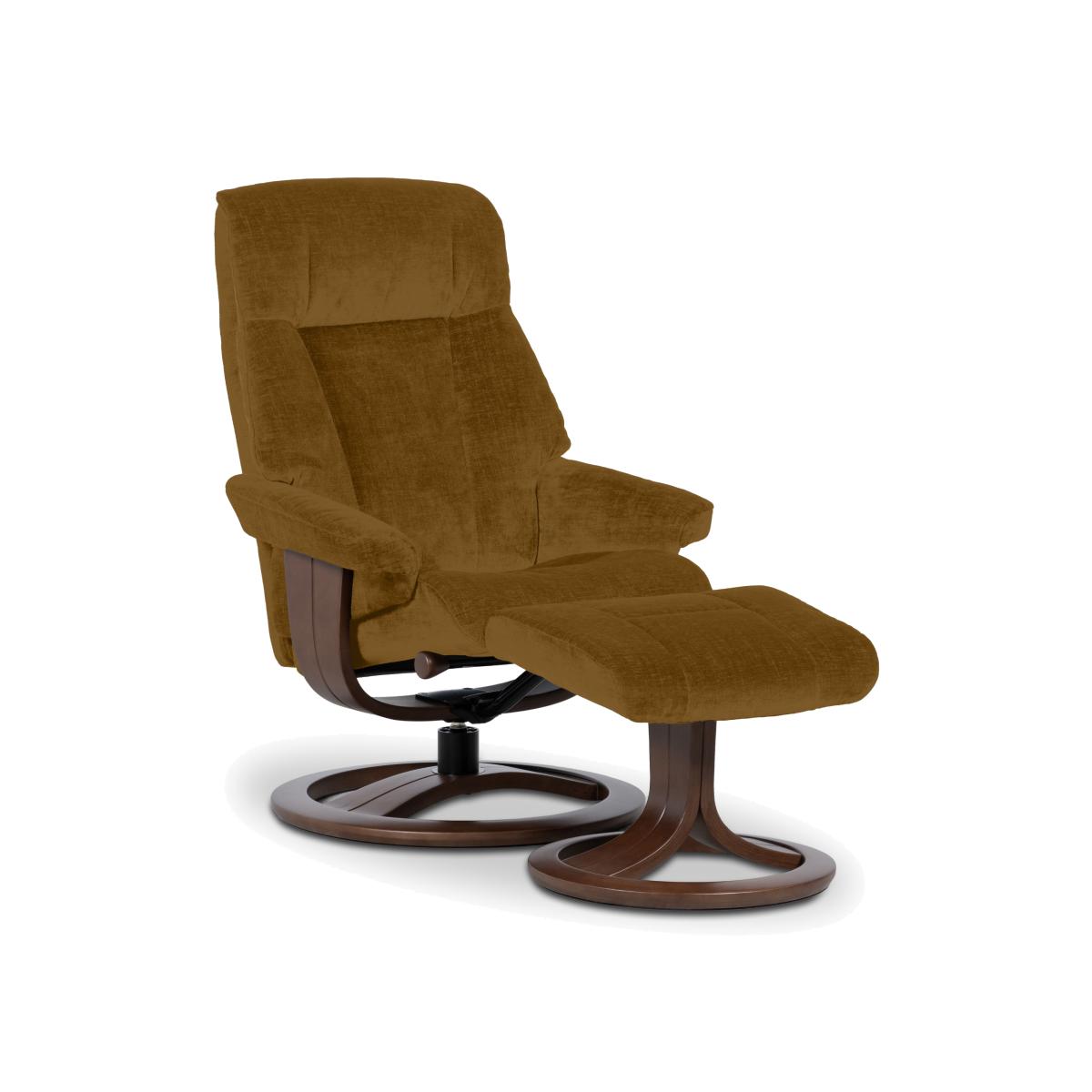 Enjoy cool retro style and incredible comfort when you bring home this stunning swivel recliner chair and footstool set. Handcrafted. Why you'll love it Retro-inspired swivel reclining chair and footstool combo. The effortless way to recline, swivel and put your feet up in style. Adjustable headrest makes it even easier to relax. Dynamic lumbar support eases an aching back. Premium quality foam cushioning for exceptional comfort and support. Extra strong tubular steel frame comes with a lifetime guarantee. Manual recliner mechanism with an easy-to-use lever operation. Both pieces have circular bases. In a wide choice of high-quality upholstery fabrics. Also available in 100% leather. Handmade exclusively for Furniture Village. This medium swivel chair and footstool is part of our Effortless collection. What you need to know Self-assembly required. Medium comfort level. Seat suspension: sinuous spring. Seat cushioning: cold cure moulded foam. Cushioning is fixed. Back suspension: sinuous spring. Back cushioning: cold cure moulded foam. Cushioning is fixed. Arm cushioning: cold cure moulded foam. Please allow time for the recliner mechanism to ease. Minor gaps are necessary to ensure ease of motion and may be exaggerated depending on floor type. Some fabrics can show wear on areas of more use or in direct sunlight. Clean regularly using a soft brush or vacuum with the curtain attachment. Deal with any spills promptly. Professional cleaning advised for oil- and grease-based stains. Please read our upholstery care guide for more advice.