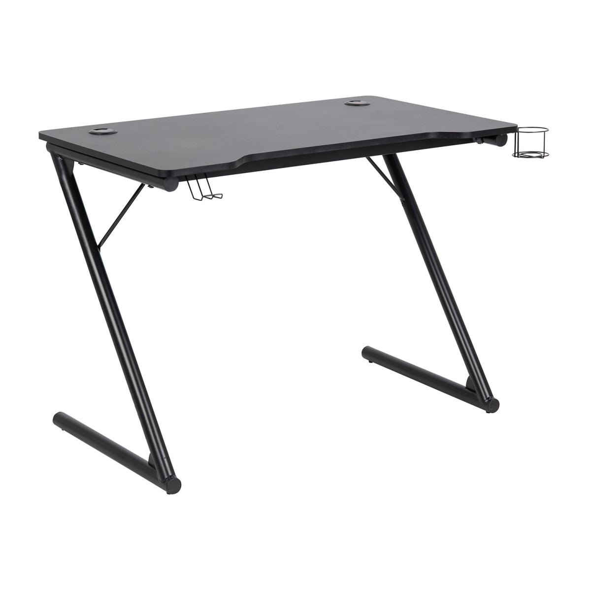 Upgrade your gaming setup with the Trooper Gaming Desk. Super stylish and modern, this desk has a robust carbon rough melamine top that's matched with a sturdy matt black 'Z' shaped base to elevate your room's style. Its convenient design features a cup holder, headset hanger, and wire hole to keep your space organised and make your gaming experience more immersive.