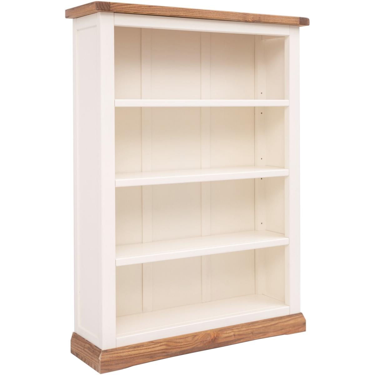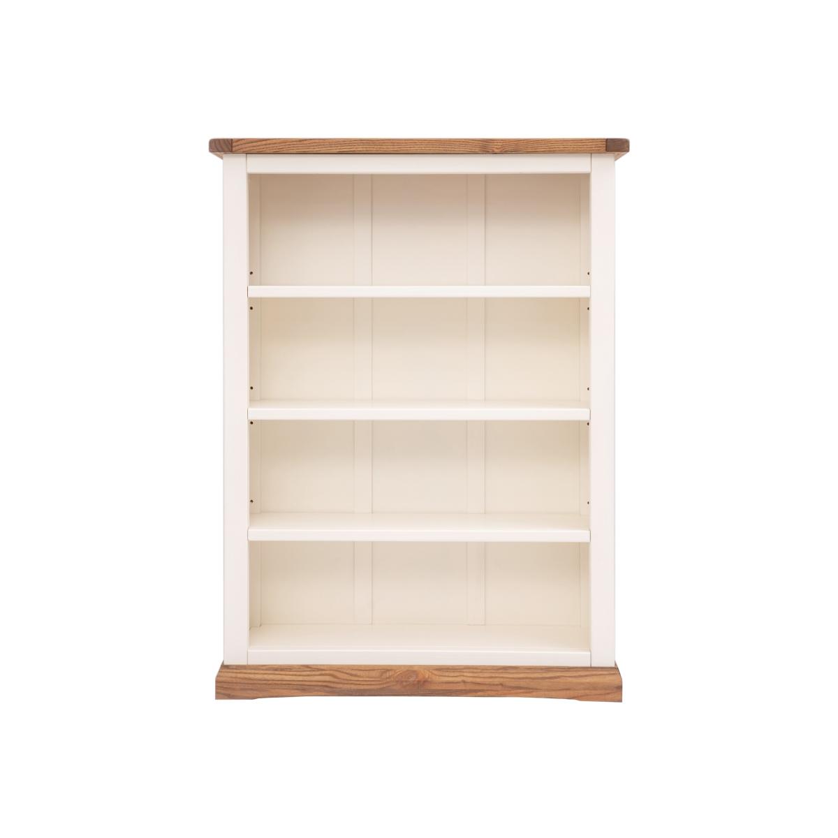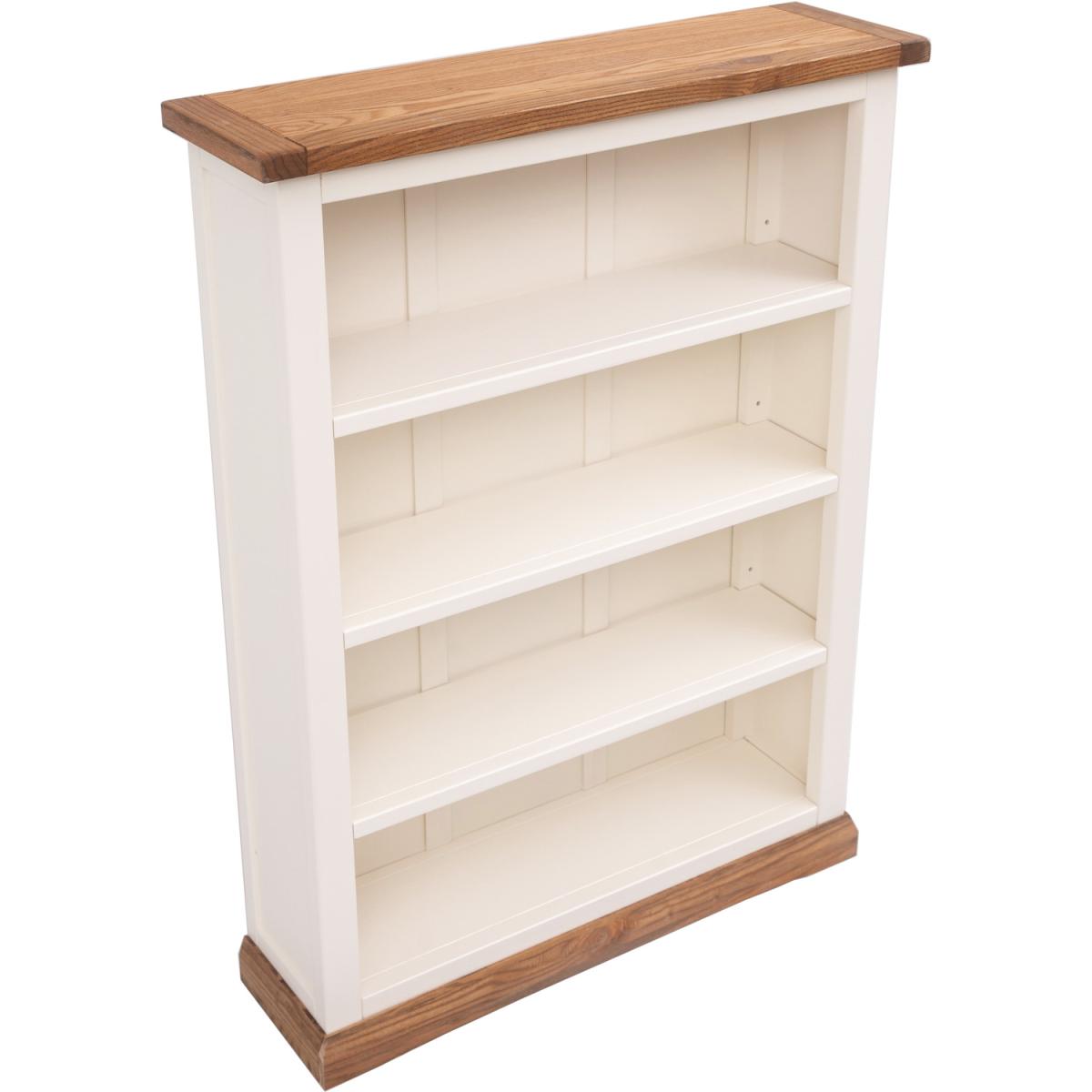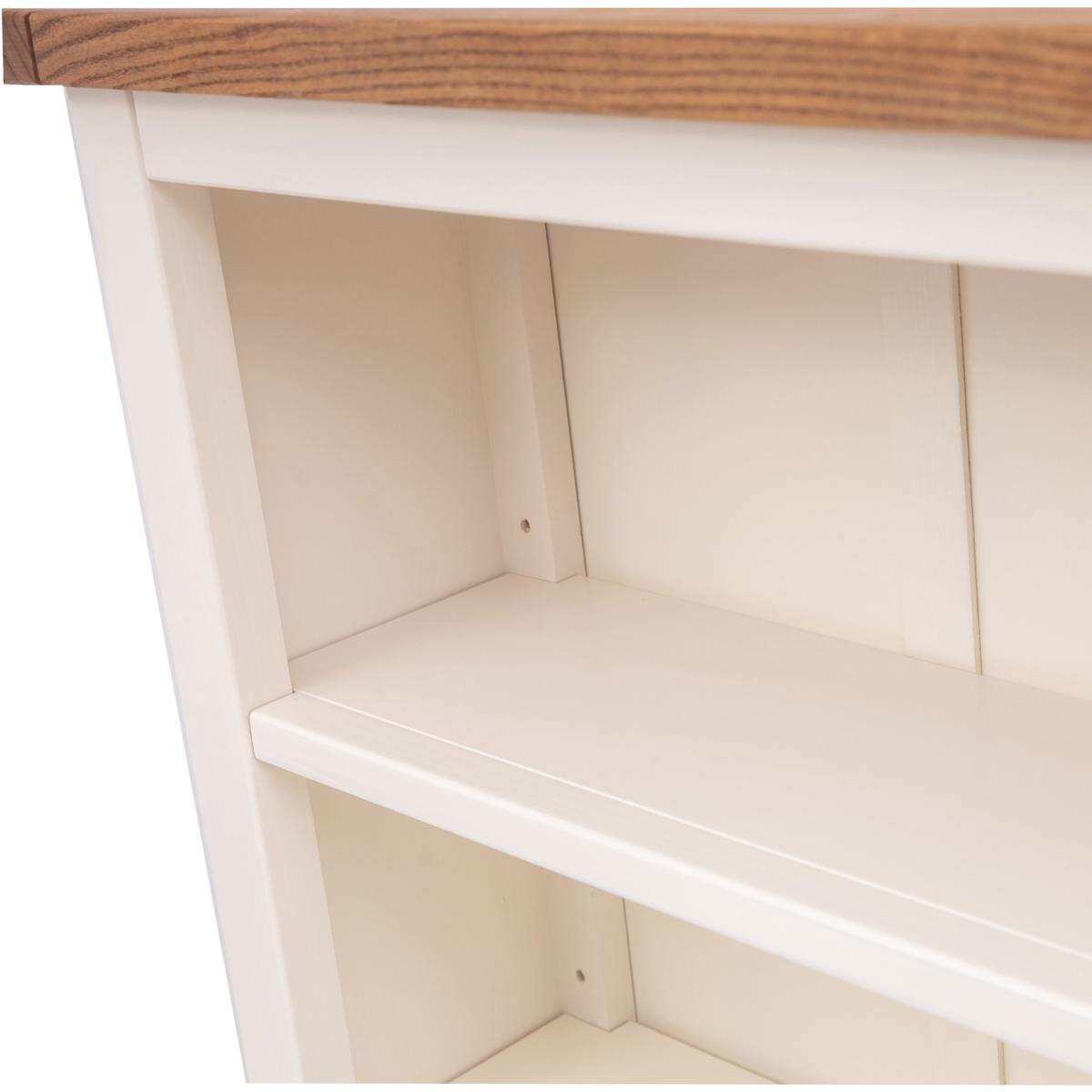 Our Tropea collection has a simple but pleasing design and is produced by our skilled craftsmen to the highest standards using responsibly sourced wood and veneers. All tops are made using a combination of hardwood and ash veneer and are carefully hand waxed giving it a great look. The body is finished with high-quality eco-friendly water-based paint in an off-white colour. This stylish low bookcase is ideal for storing and organising your collection of books or perhaps CDs or DVDs over four shelves. The three central shelves are both adjustable to tailor the space to suit your requirements. The top is ideal to display a favourite photograph or a houseplant. These attributes combined with a simple construction for easy assembly make it a great value product to be taken home today.