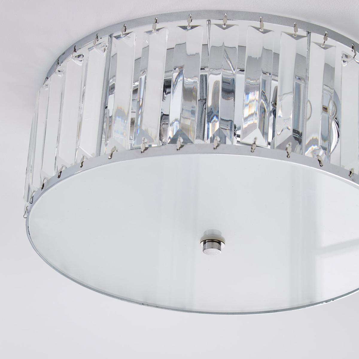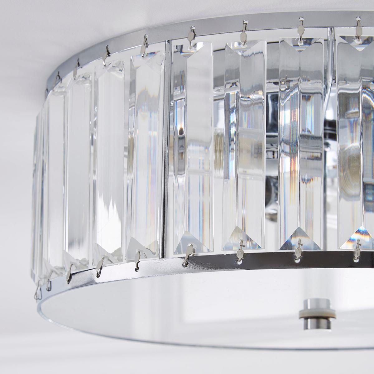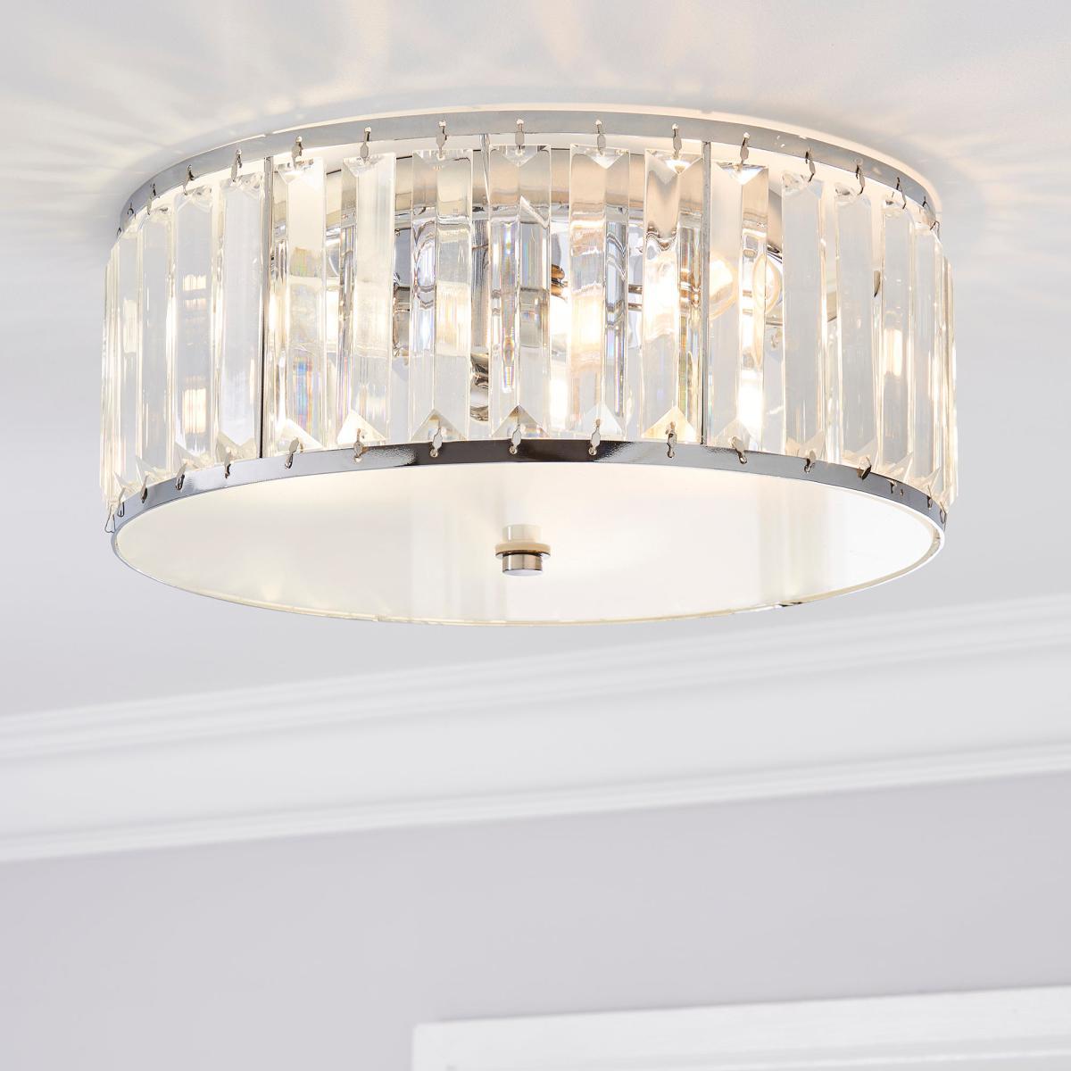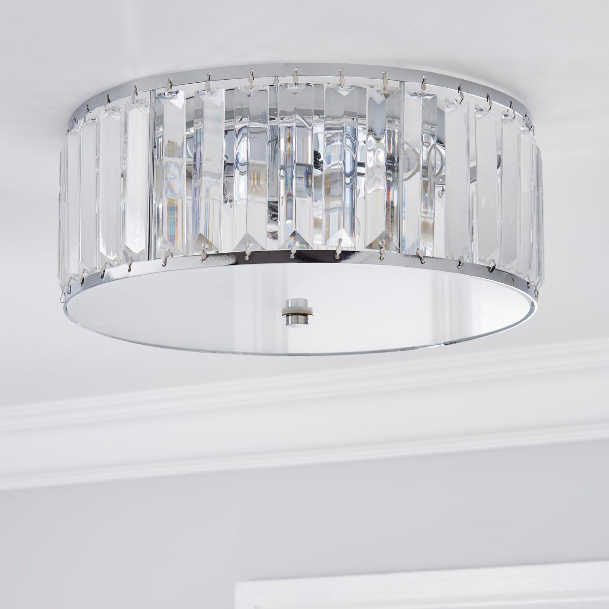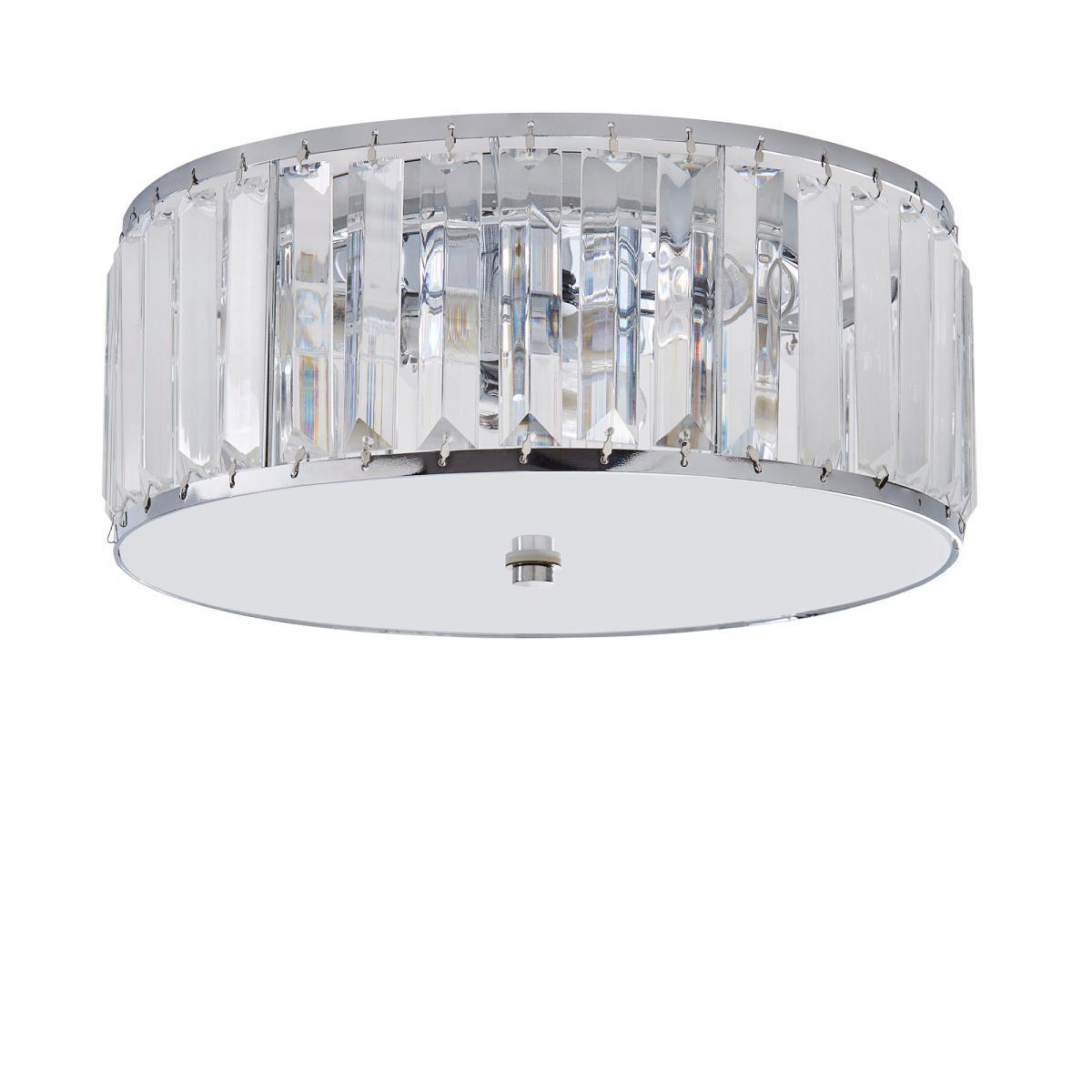 This stunning chandelier has a glamorous crystal flush light and is suitable for any indoor room, including bathrooms in addition to being dimmable compatible. With a chrome plate and clear crystal glass, this attractive piece will complement an array of home decors beautifully. This light is suitable for use in the bathroom within Zone 2 (IP Rating 44).