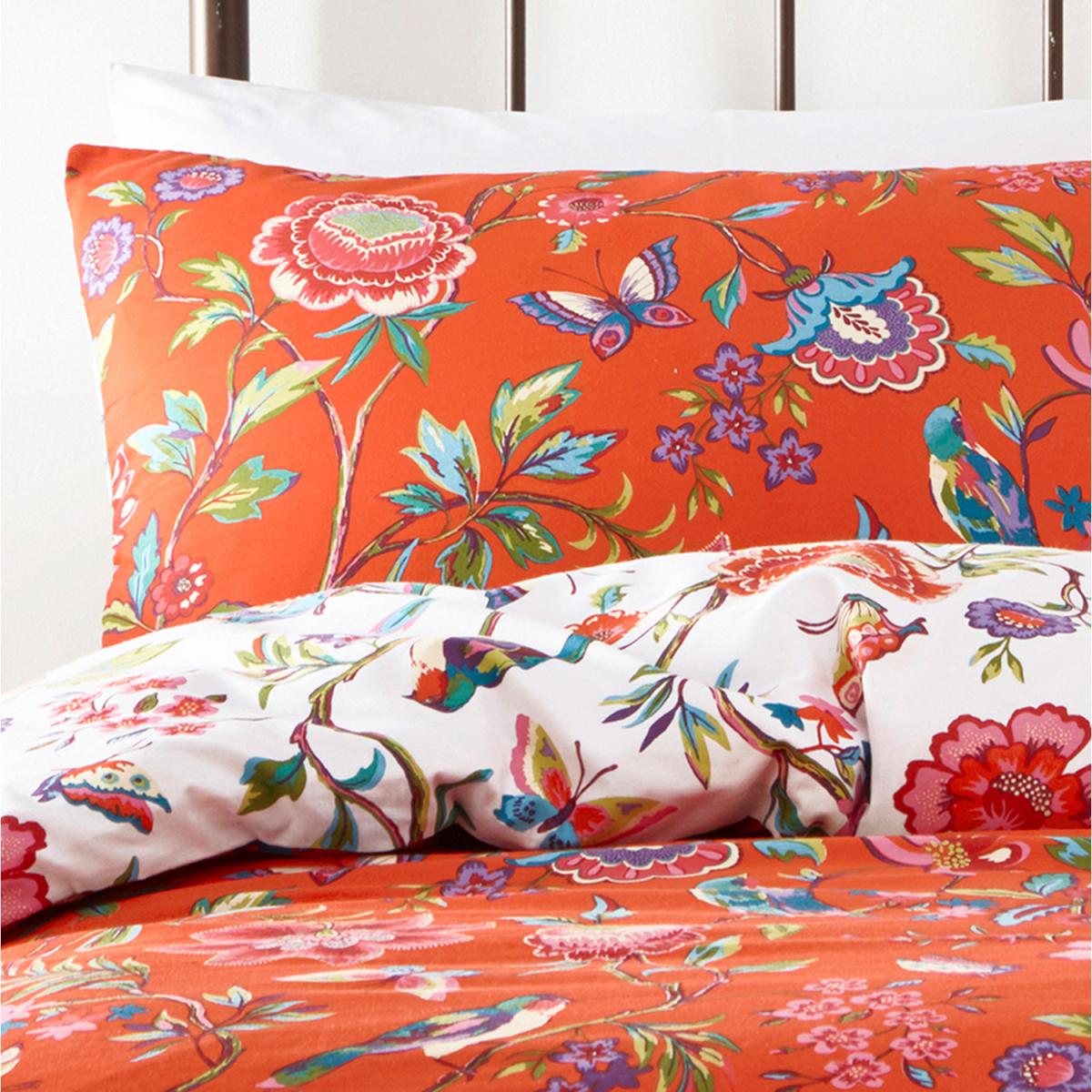 Beautifully patterned with a mirage of brightly coloured tropical birds, butterflies and flowers it's a fun and unique piece. This duvet cover features a secure button closure. Includes matching housewife pillowcases measuring 50 x 75cm.