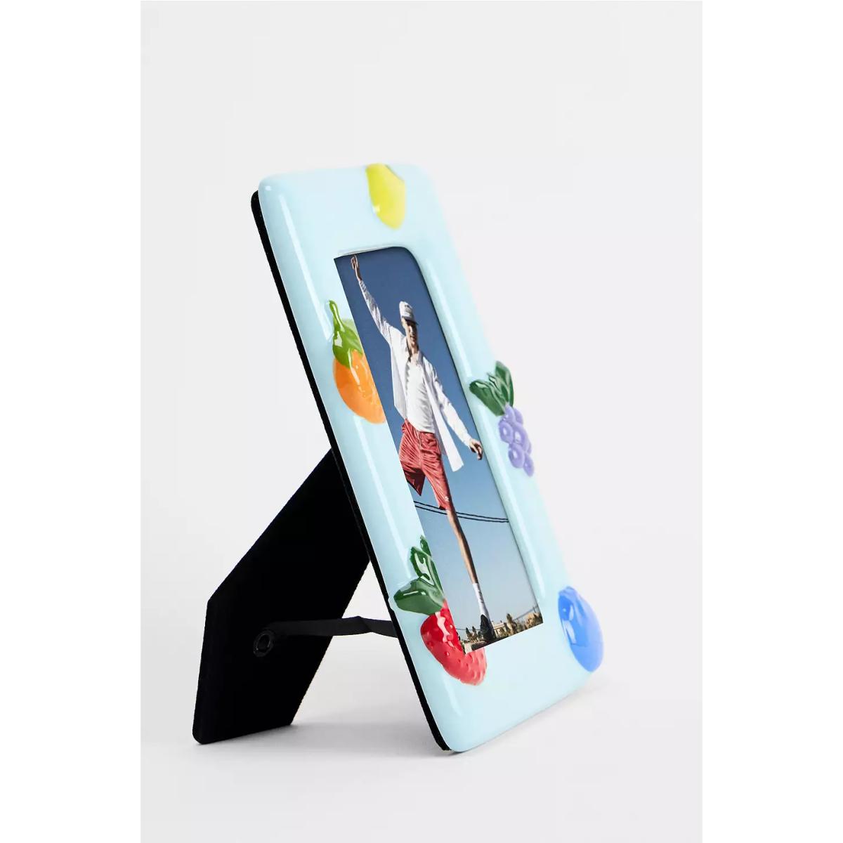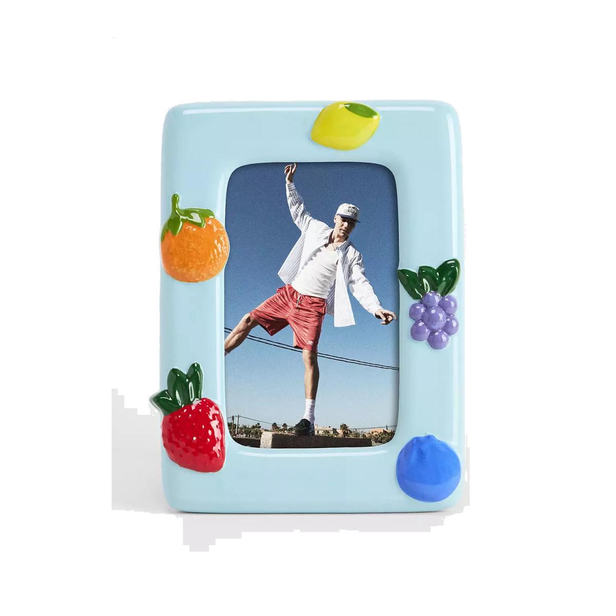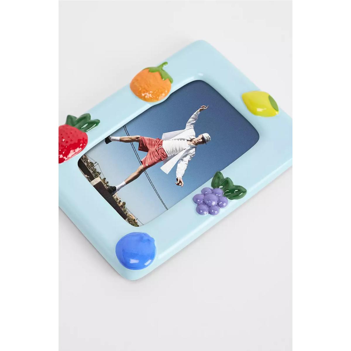 Add a tropical vibe to your space with this fun photo frame, topped with fruity motifs. Crafted from glossy ceramic with a rectangular shape and classic stand to easily display your favourite memories. **Content + Care** \- Stoneware \- Wipe clean