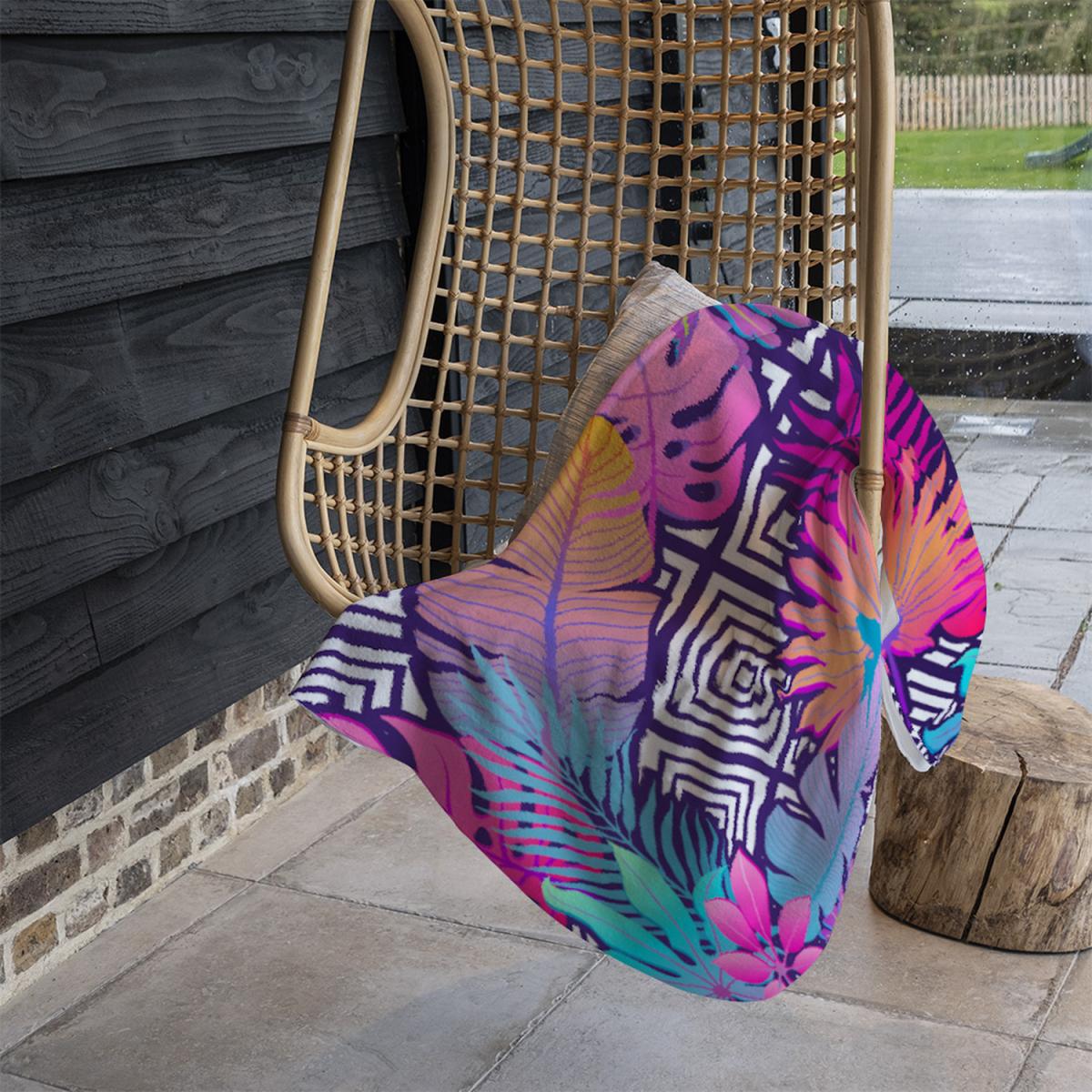 I love this one because the black geometric pattern adds a sleek, modern touch that works well in monochrome or minimalistic interiors. It’s versatile enough to inject a bit of interest into neutral sofas or bed settings, making it ideal for urban or contemporary styles. When styling, try draping it casually over the arm of a sofa or layering it with textures like velvet or linen for a relaxed, layered look. It’s also practical-great as a lightweight throw for cosy evenings or an eye-catching accent on a bed. Its bold pattern and colour palette mean it can easily become the focal point or complement a more subdued colour scheme.