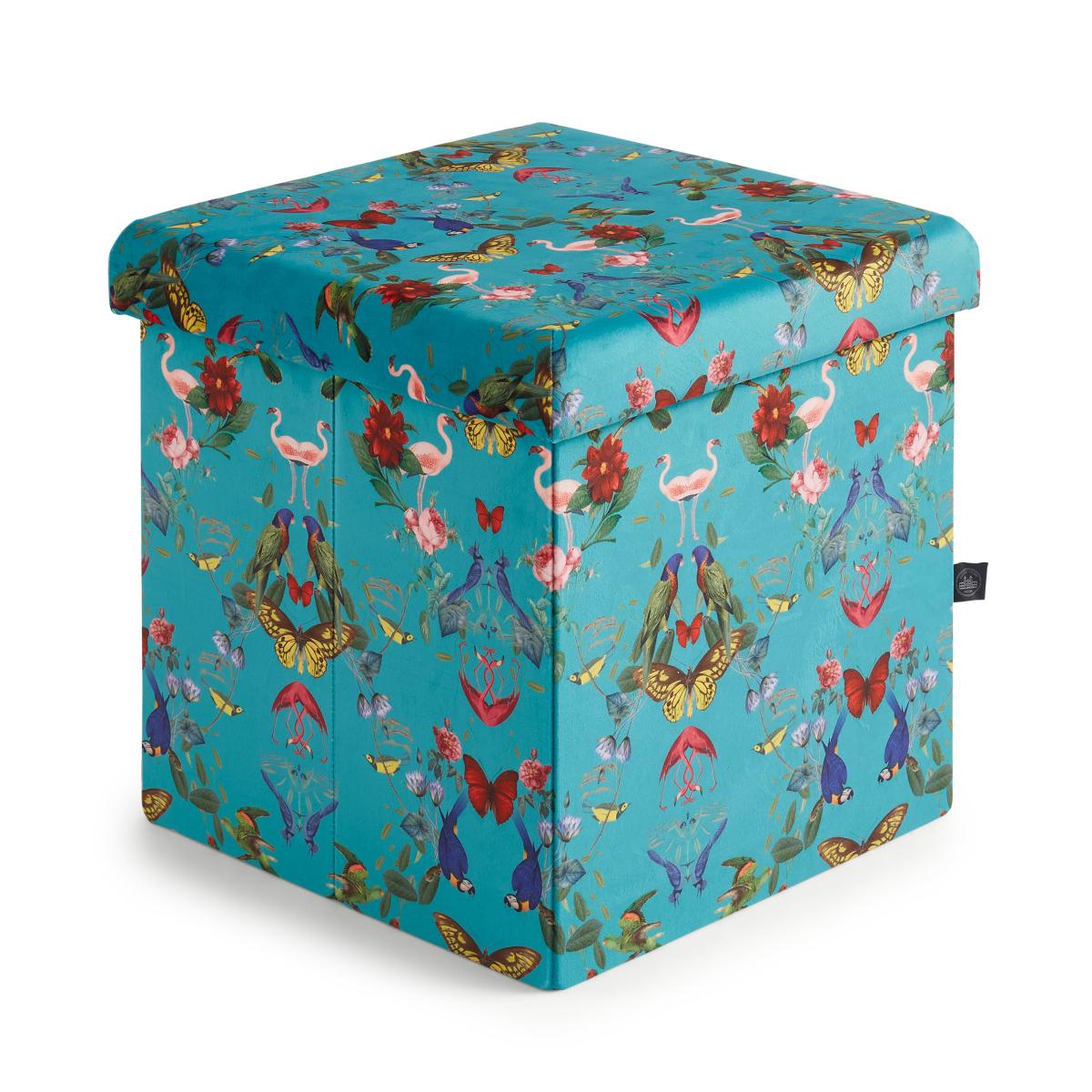 **In collaboration with the Natural History Museum*** Flat packed and easy to assemble in seconds* Can be used as a seat, footrest, or storage box* Soft velvet feel* No tools needed Whether you need to put your feet up, need an extra seat for guests or need a compact multipurpose storage box, the Tropical Kaleidoscope Cube Ottoman is just the perfect solution! This ottoman comes flat packed, but don’t worry, you can assemble this in seconds without the need of any tools or screws! Pop your feet up on this cushioning ottoman or store your cosy blankets. Designed with a stunning Tropical Kaleidoscope print, featuring beautiful birds and butterflies, perfect for the autumn season.**Natural History Museum x Dunelm**From the intricate pattern of a butterfly’s wing to the petal formation of a flower, symmetry is everywhere in nature. In the Kaleidoscope collection, elements from nature collide to create mesmerising abstract shapes and mirrored compositions. Brimming with detail and pattern, this dizzying journey uses colour from brightly coloured butterflies and tropical birds on a rich background for a dramatic look. © The Trustees of the Natural History Museum, London 2024. All Rights Reserved.