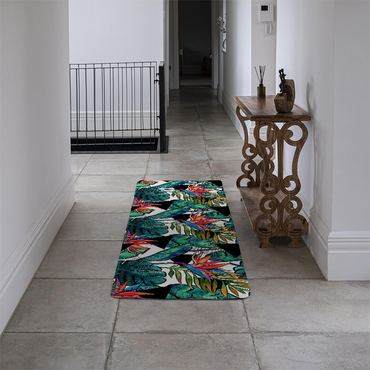 This tropical leaves and flowers runner rug is a great statement piece for adding a vibrant, lively touch to both modern and eclectic interiors. I love how its bold green palette and botanical print create an instant focal point, making it perfect for hallways, kitchens, or narrow spaces where you want to add colour without overwhelming the room. For styling, pair it with simple, neutral furnishings to let the pattern stand out, or add in some matching accessories like green cushions or vases for a cohesive look. Practical tips include choosing a non-slip underlay for safety and considering cleaning instructions carefully, as darker prints tend to mask dirt well and require minimal maintenance. Overall, it’s an easy way to introduce a burst of nature-inspired charm into your home.