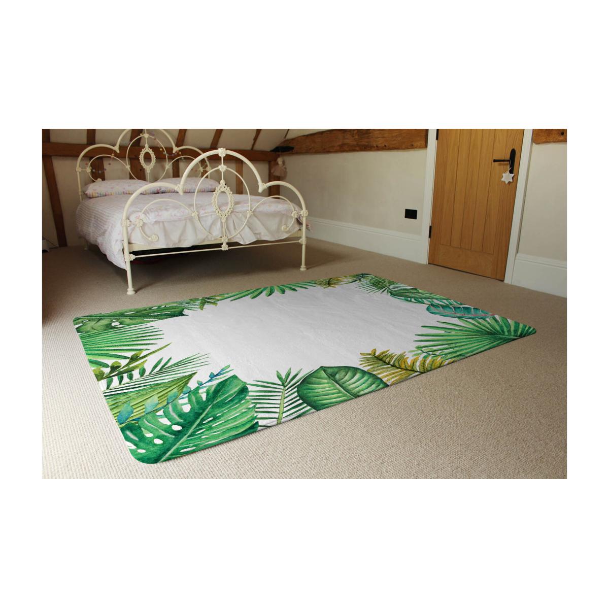 This rug is an excellent choice for adding a touch of tropical vibrancy to any room, especially in spaces with neutral or minimalist decor. I love how the lush green leaves bring freshness and life without overwhelming the space. It works particularly well in bedrooms or living areas aiming for a relaxed, nature-inspired vibe. For practical styling, consider pairing it with light, airy furnishings and subtle botanical accessories to enhance its tropical feel. The 230cm size makes it versatile for various room sizes, and it can serve as a statement piece or a soft grounding element to tie the room together.
