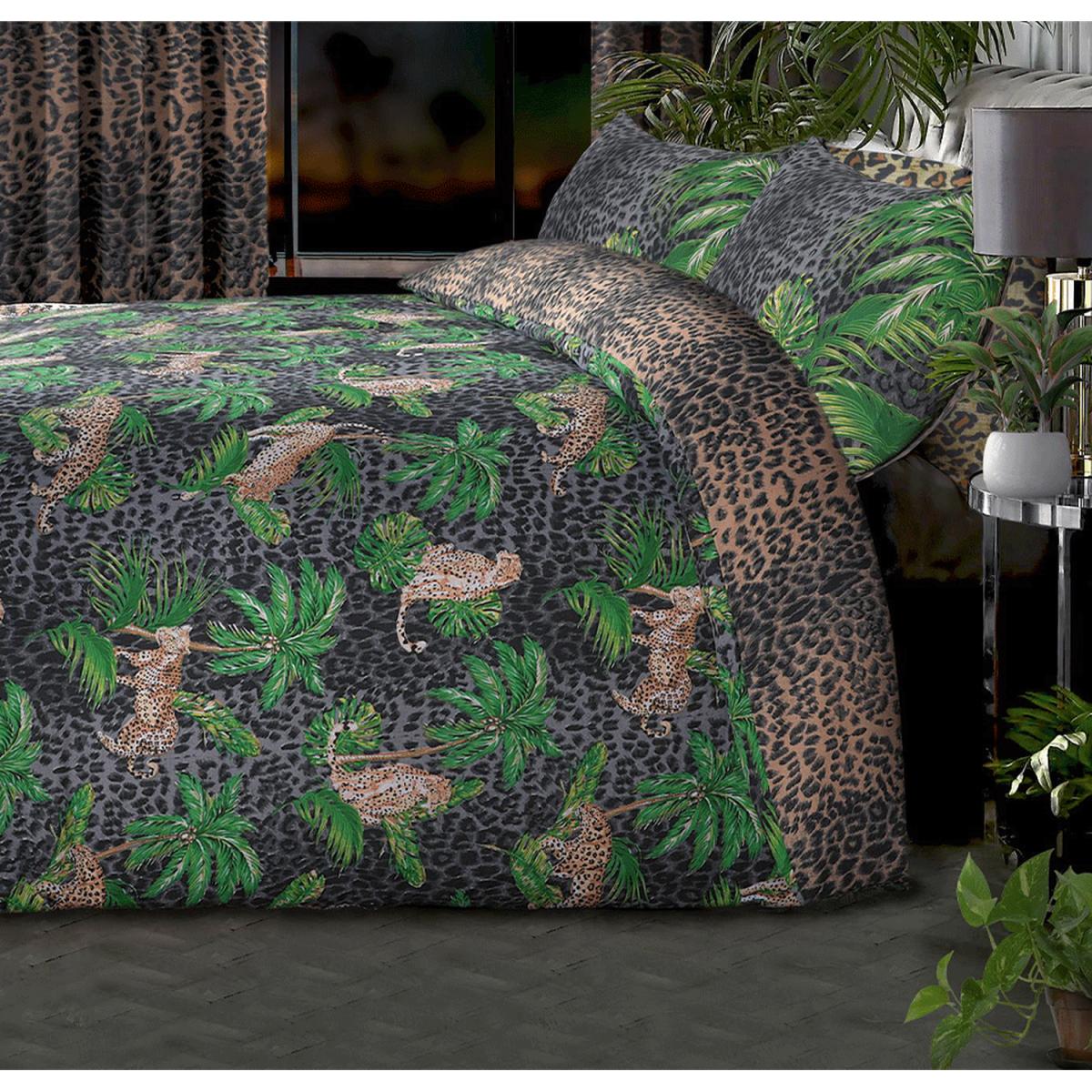Introducing the Tropical Leopard Jungle Animal Print Reversible Duvet Set, a bold and captivating addition to your bedroom décor that brings the allure of the jungle right into your home. This duvet set is designed to create an exotic and adventurous ambience in your sleeping space. Crafted from a high-quality blend of 60% polycotton and 40% polyester, this duvet set offers the perfect combination of the softness and breathability of cotton and the durability and wrinkle-resistance of polyester. This ensures that your bed not only looks extraordinary but also feels exceptionally comfortable. The most remarkable feature of this duvet set is its reversibility. With two distinct yet harmonious animal print designs inspired by the wild, you can easily transform your bedroom's atmosphere to match your mood or the season. It's like having two duvet sets in one! The button closure adds a touch of style and convenience, ensuring that your duvet stays securely in place. This set includes one pillowcase for the single size and two pillowcases for double and king sizes, providing you with a complete and coordinated bedding solution. Furthermore, the easy-care design means that it's machine washable, and it maintains its vibrant prints and softness wash after wash. Embrace the spirit of adventure with the Tropical Leopard Jungle Animal Print Reversible Duvet Set and enjoy the perfect blend of exotic design, comfort, and practicality every night. Transform your bedroom into a wild paradise with this exquisite duvet set.