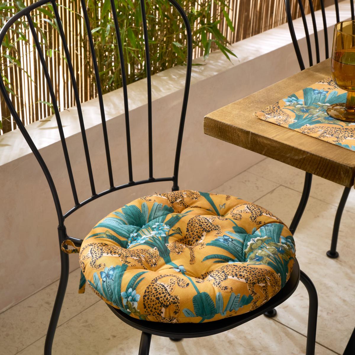 * Fun maximalist design * Made from 100% cotton * Coordinating items available Bring a bold, exotic flair to your seating with the Tropical Leopard Round Seat Pad, made from 100% cotton for a soft and comfortable feel. The striking tropical leopard design adds a touch of adventure to your home, perfect for making a statement in any room. Filled with 100% polyester, this seat pad offers excellent support and comfort. Coordinating items are available, allowing you to create a stylish, cohesive look throughout your space. Ideal for chairs, stools, or outdoor seating, it’s both practical and eye-catching. Refresh your home with this vibrant and cosy seat pad.