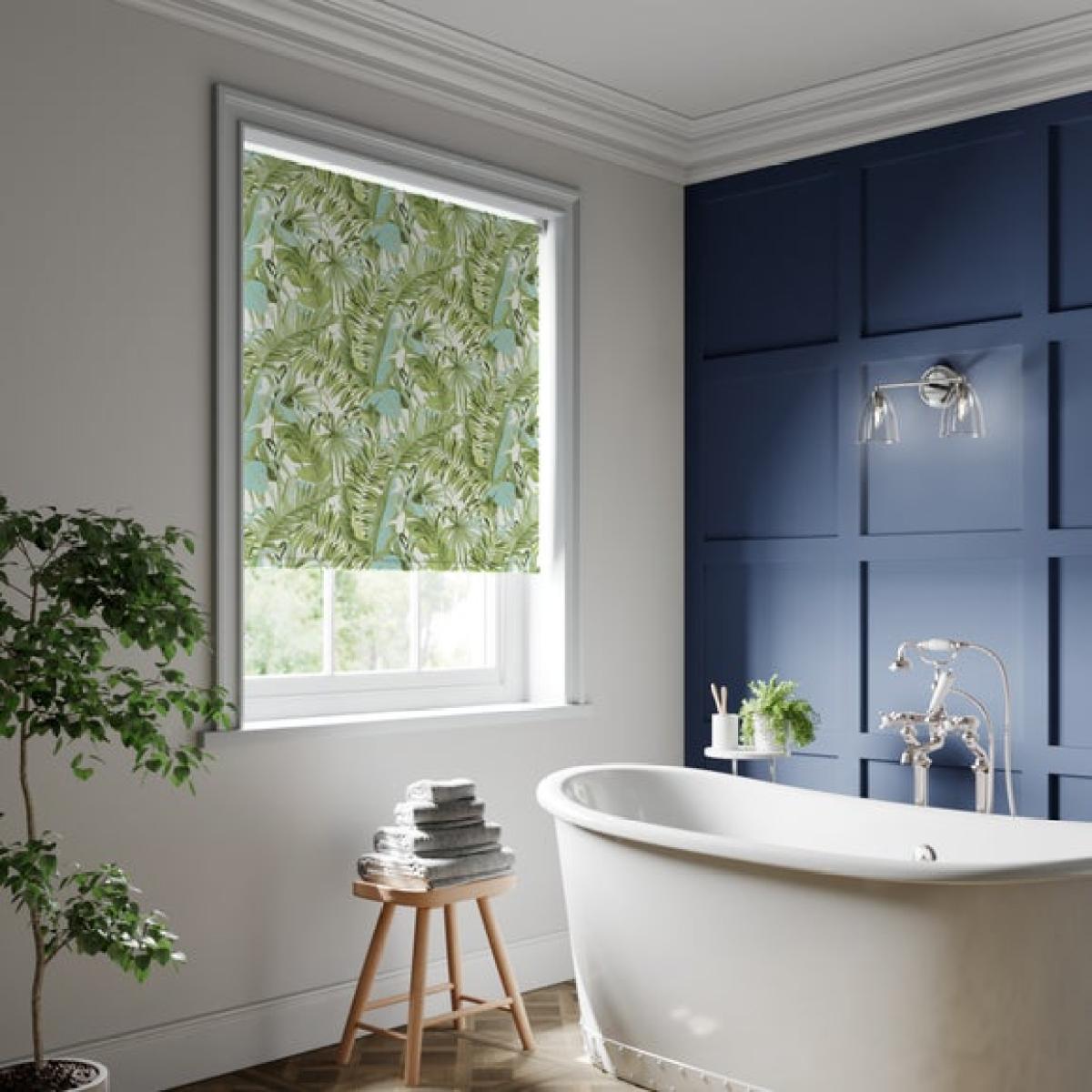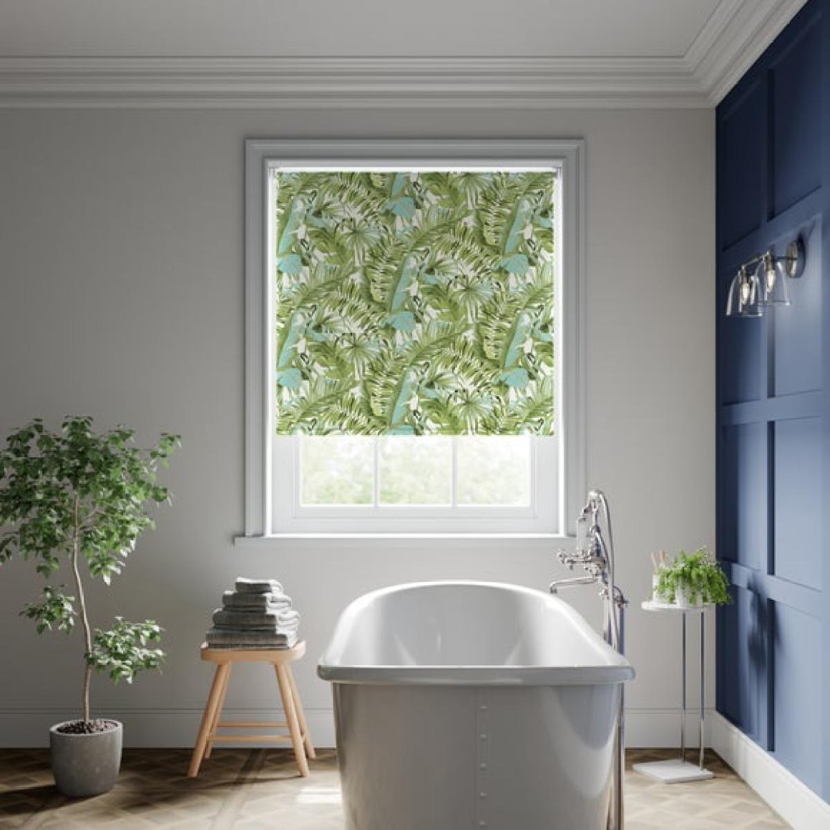 Get 15% off selected Made to Measure blinds when you buy Made to Measure curtains and blinds together. *Use code M2M15OF F (Ts & Cs apply). * Tropical leaf design * Blackout * Fire Retardant (complies to BS5867 Section 2, Type B) * Moisture resistant * Premium polyester composition * Choose fitting type, chain side, chain colour, and roll direction * Supplied with all fixings for simple installation Bring your space to life with the vibrant, calming, and sophisticated Tropical Maui Floral fire retardant, moisture resistant, and blackout roller blind. Featuring a tropical leaf design, this blind brings tropical elegance to your decor. Crafted from blackout lined, fire retardant, and moisture resistant premium polyester, the fabric is durable and offers full blackout coverage, privacy, and additional safety. Ideal for bathrooms, bedrooms, home offices, and living areas. With customisable options, you can choose a side for the operating chain, chain colour, fitting type, and roll direction. All fixings are included for quick and simple installation. Please note: The actual blind fabric will be approximately 35mm narrower than the overall blind width, this is to accommodate the brackets and operating mechanism.