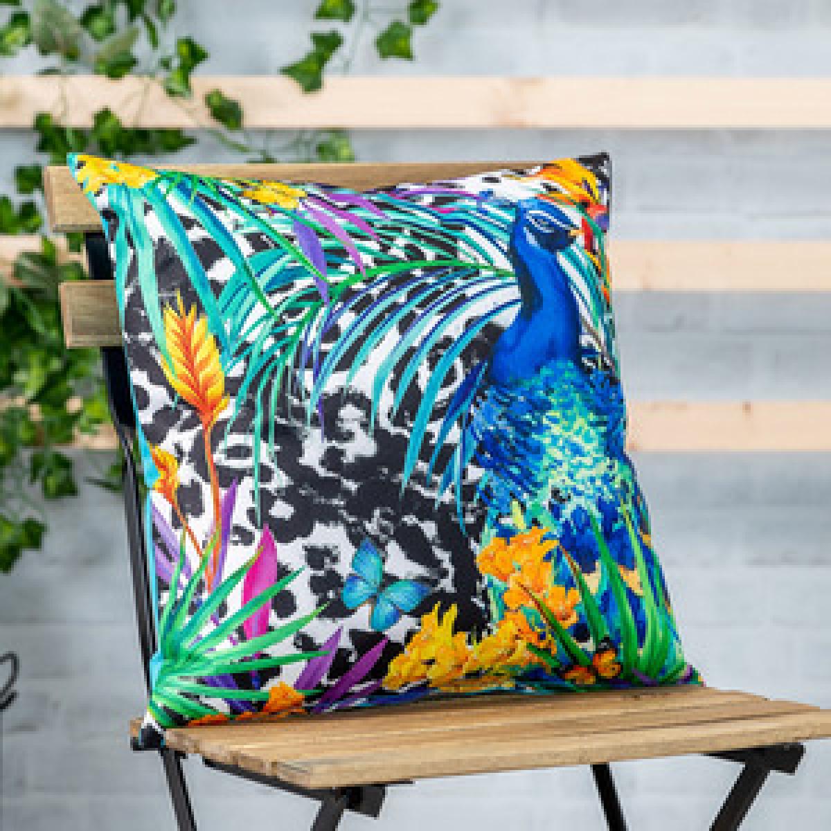 Featuring a tropical bird design with colourful botanicals, this vibrant outdoor cushion is sure to bring a touch of personality and expression to any space. Designed with 100 waterproof fabric, this patterned cushion is ideal for both indoor and outdoor use. Stylish and comfortable thanks to its plump fibre filling, this cheerful cushion is perfect for adding a decorative touch to your outdoor furniture. Extend its life by simply wiping clean any spillages and storing them in a cool, dry place indoors - ready to bring outside when the warmer weather arrives on fresh spring and bright summer days.