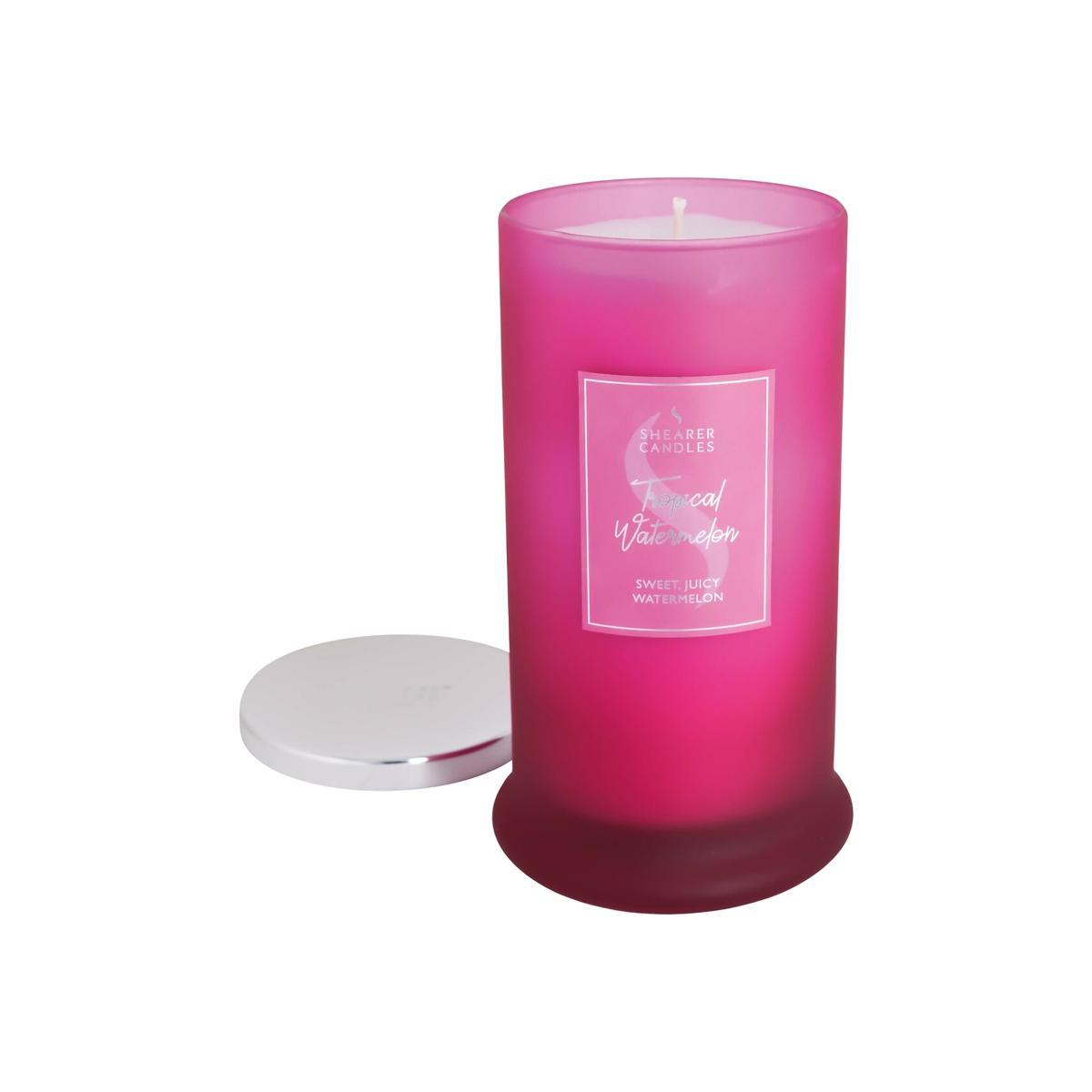 This product will be dispatched by one of our trusted suppliers. You’ll be contacted by their selected courier about your delivery. This tall pillar jar candle with branded metal lid will create a colourful, decorative statement while effectively scenting your home. A sweet, juicy, tropical, mouth watering scent that will remind you of summer days. Product Dimensions: Height 15.7cm Width 8.9cm This highly scented candle will burn for over 100 hours.