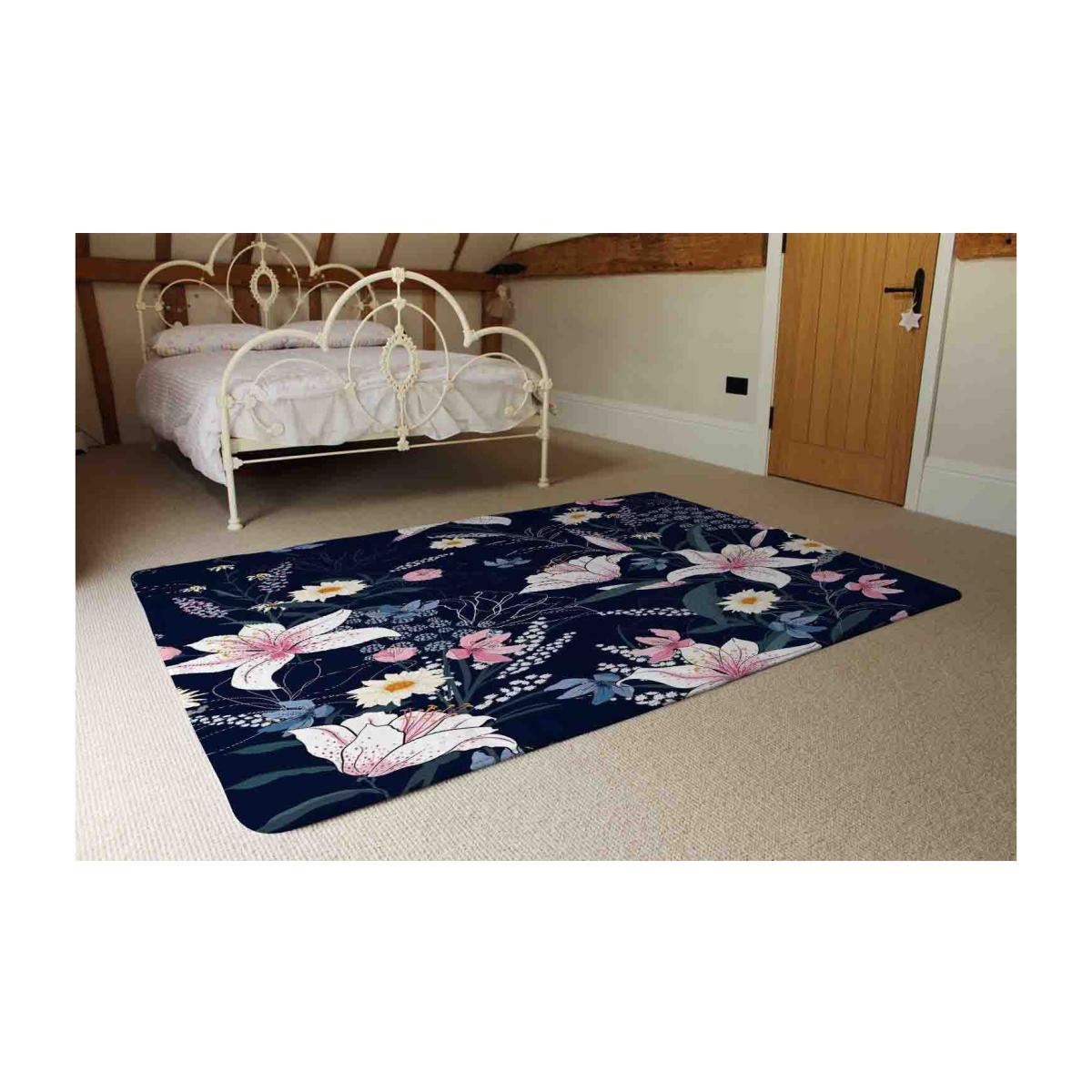 This faux rug is a great pick for adding a vibrant, tropical touch to a bedroom or living space, particularly if you're aiming for a bold yet low-maintenance statement piece. Its black background with pink and white floral accents makes it versatile enough to work in various colour schemes, from monochrome to more colourful interiors. I love it paired with neutral or pastel furnishings to let the pattern pop, or layered over a neutral carpet for added depth. Practical styling tips include placing it in a cosy reading nook or at the foot of the bed to create a focal point, and because it’s faux, it’s easy to keep clean and perfect for high-traffic areas or homes with pets. Overall, it adds a lively, tropical vibe without the hassle of real flora or constant upkeep.