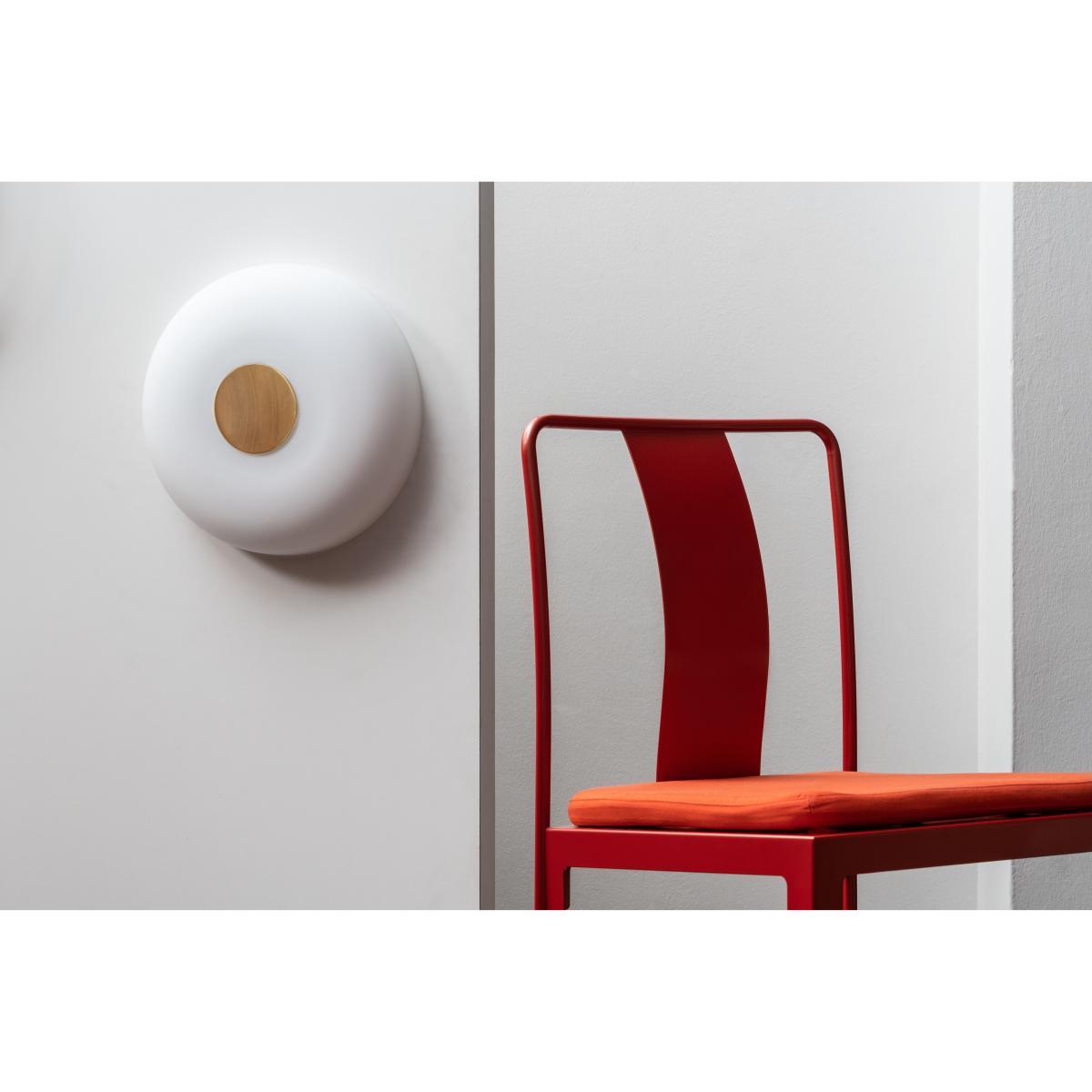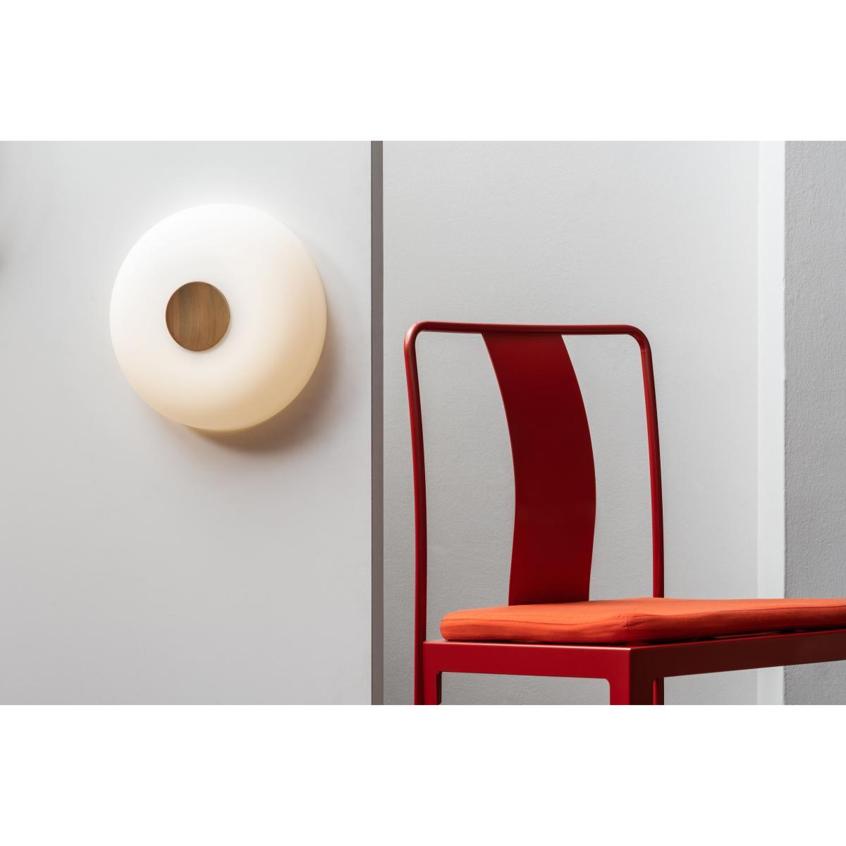 Tropico is a simple, elegant lamp that can be used both as a wall lamp and a ceiling lamp. The opaline blown glass cap is embellished in its centre with a metal disc. Pure, soft lines and transparency combine with sobriety and refinement. Tropico uses the LED light source over its entire surface for optimal light output. The light is comfortable, homogeneous and not dazzling. The Tropico wall lamp dresses space with its essential presence.