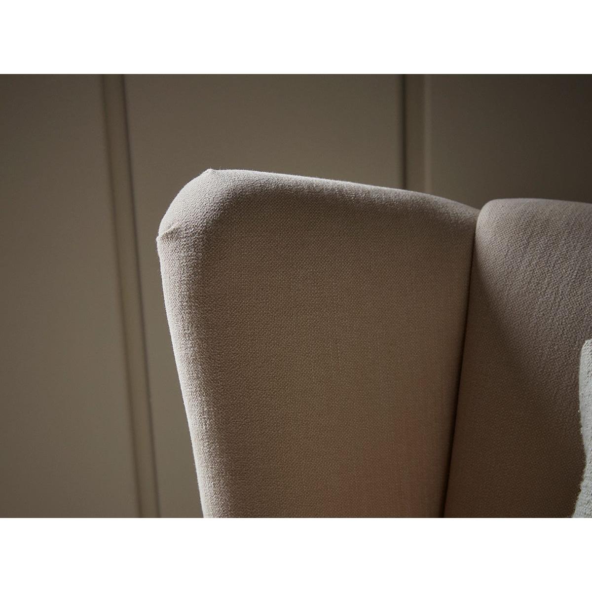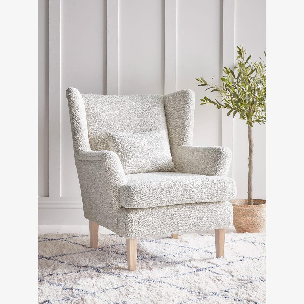 Channeling a fun retro feel, this lovingly crafted collection features tapered legs, wide and curvaceous winged backs and angular sloping arms. Perfect as part of a complete living room set, or as a statement occasional chair, the Trosa Armchair is a cosy and welcoming seat which will hug you into its enveloping form. A single scatter cushion provides additional support. The Trosa range also includes a two seater sofa and an ottoman. Pictured here in our Natural bouclé material, our Trosa collection can be upholstered in a choice of 34 distinctive shades and six fabrics to suit your style. Read our Upholstery FAQs View our full Upholstery Terms and Conditions