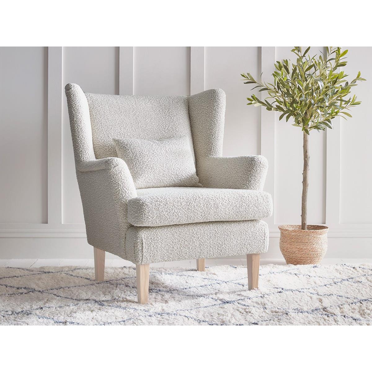 Channeling a fun retro feel, this lovingly crafted collection features tapered legs, wide and curvaceous winged backs and angular sloping arms. Perfect as part of a complete living room set, or as a statement occasional chair, the Trosa Armchair is a cosy and welcoming seat which will hug you into its enveloping form. A single scatter cushion provides additional support. The Trosa range also includes a two seater sofa and an ottoman. Pictured here in our Natural bouclé material, our Trosa collection can be upholstered in a choice of 34 distinctive shades and six fabrics to suit your style. Read our Upholstery FAQs View our full Upholstery Terms and Conditions