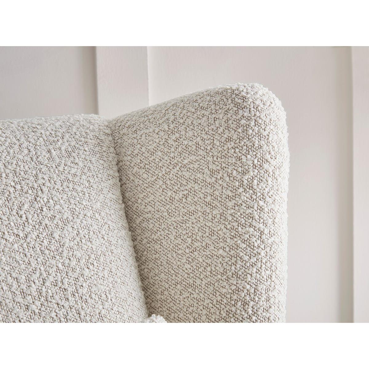 Channeling a fun retro feel, this lovingly crafted collection features tapered legs, wide and curvaceous winged backs and angular sloping arms. Perfect as part of a complete living room set, or as a statement occasional chair, the Trosa Armchair is a cosy and welcoming seat which will hug you into its enveloping form. A single scatter cushion provides additional support. The Trosa range also includes a two seater sofa and an ottoman. Pictured here in our Natural bouclé material, our Trosa collection can be upholstered in a choice of 34 distinctive shades and six fabrics to suit your style. Read our Upholstery FAQs View our full Upholstery Terms and Conditions