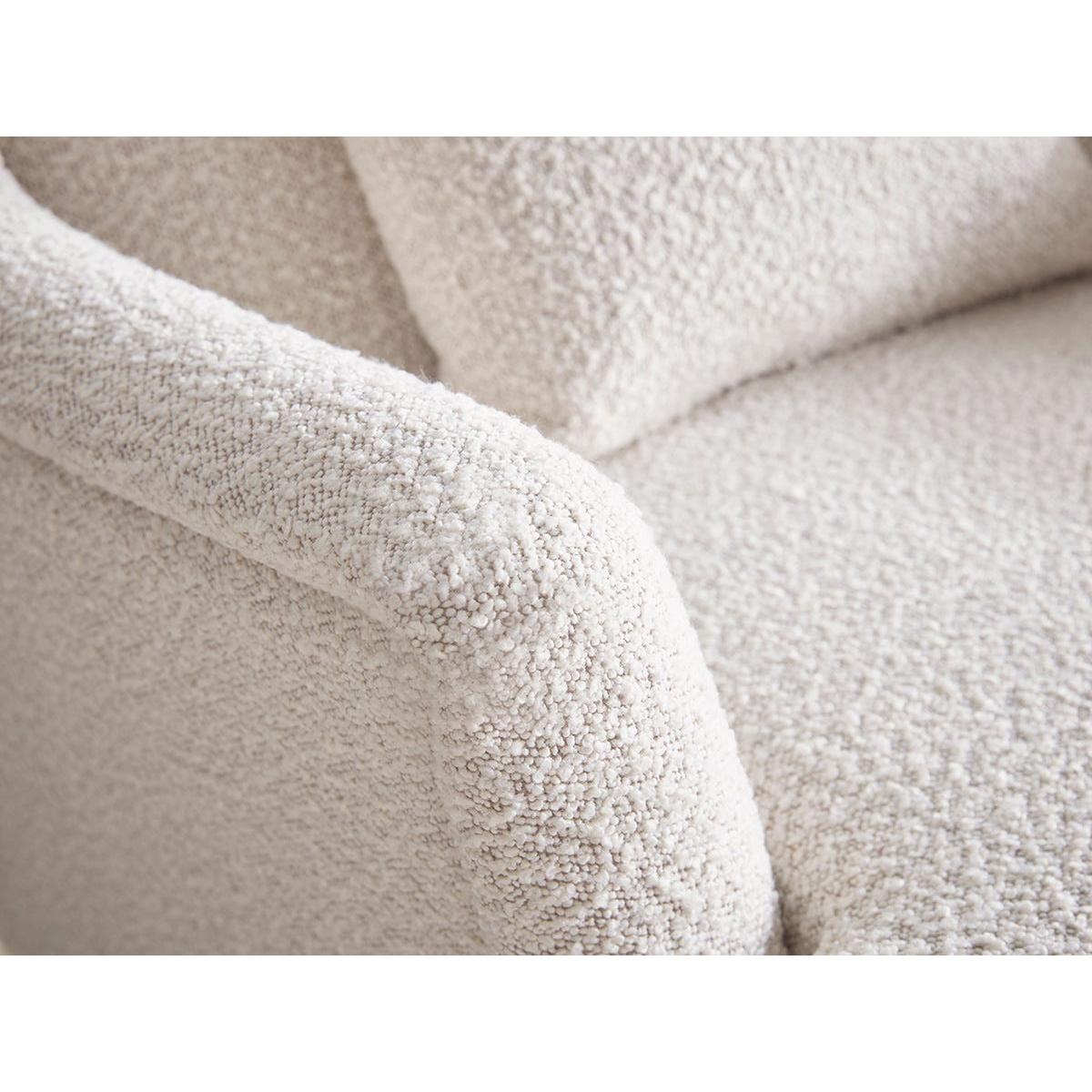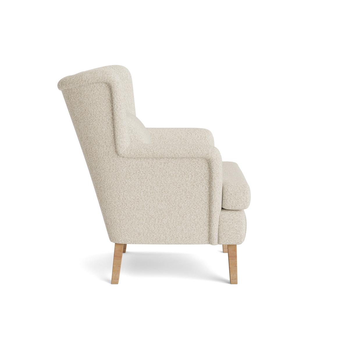 Channeling a fun retro feel, this lovingly crafted collection features tapered legs, wide and curvaceous winged backs and angular sloping arms. Perfect as part of a complete living room set, or as a statement occasional chair, the Trosa Armchair is a cosy and welcoming seat which will hug you into its enveloping form. A single scatter cushion provides additional support. The Trosa range also includes a two seater sofa and an ottoman. Pictured here in our Natural bouclé material, our Trosa collection can be upholstered in a choice of 34 distinctive shades and six fabrics to suit your style. Read our Upholstery FAQs View our full Upholstery Terms and Conditions