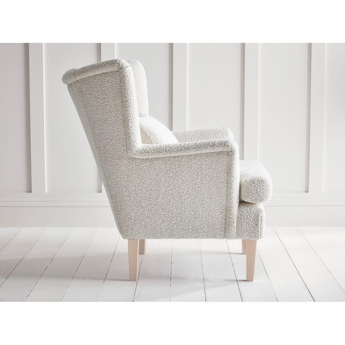 Channeling a fun retro feel, this lovingly crafted collection features tapered legs, wide and curvaceous winged backs and angular sloping arms. Perfect as part of a complete living room set, or as a statement occasional chair, the Trosa Armchair is a cosy and welcoming seat which will hug you into its enveloping form. A single scatter cushion provides additional support. The Trosa range also includes a two seater sofa and an ottoman. Pictured here in our Natural bouclé material, our Trosa collection can be upholstered in a choice of 34 distinctive shades and six fabrics to suit your style. Read our Upholstery FAQs View our full Upholstery Terms and Conditions