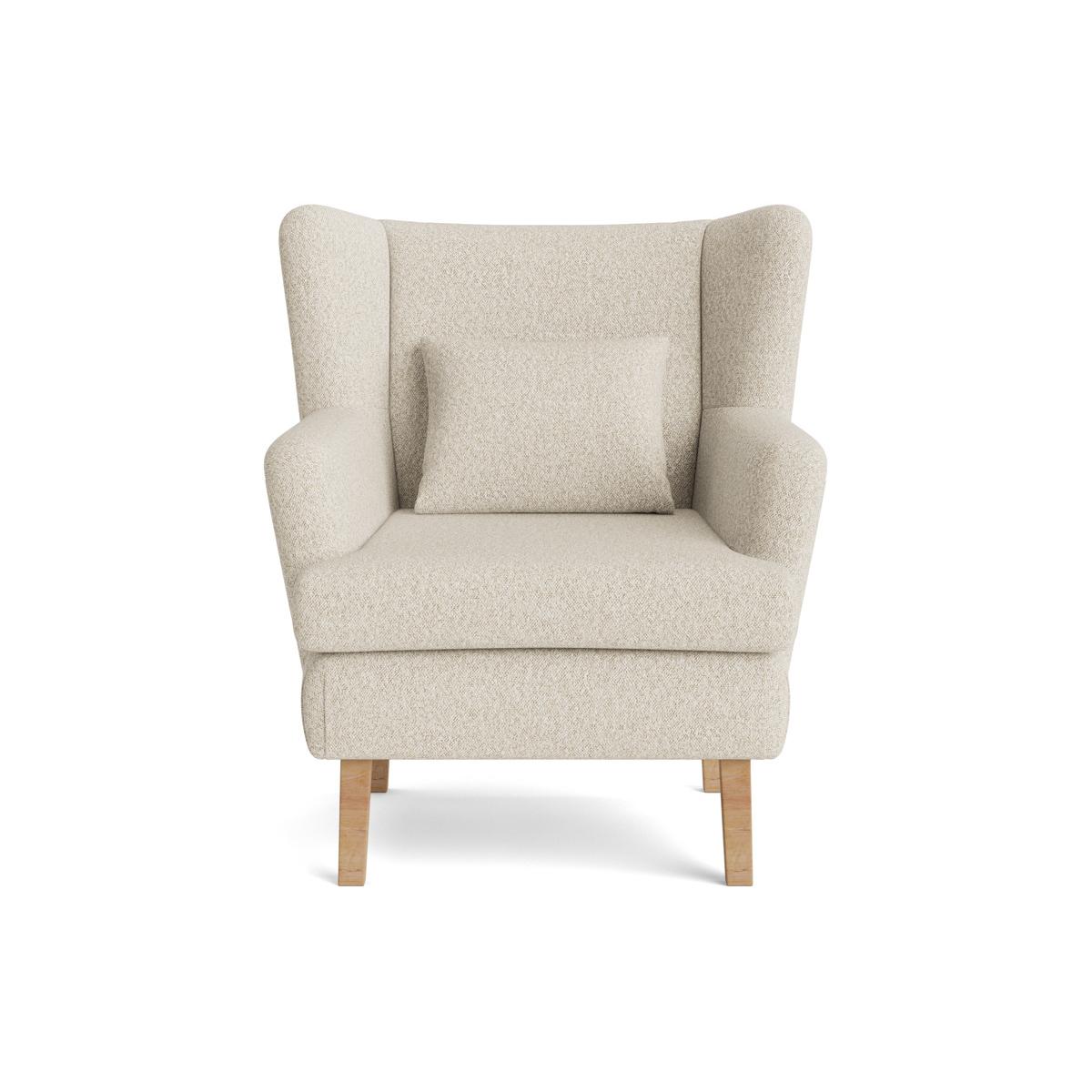 Channeling a fun retro feel, this lovingly crafted collection features tapered legs, wide and curvaceous winged backs and angular sloping arms. Perfect as part of a complete living room set, or as a statement occasional chair, the Trosa Armchair is a cosy and welcoming seat which will hug you into its enveloping form. A single scatter cushion provides additional support. The Trosa range also includes a two seater sofa and an ottoman. Pictured here in our Natural bouclé material, our Trosa collection can be upholstered in a choice of 34 distinctive shades and six fabrics to suit your style. Read our Upholstery FAQs View our full Upholstery Terms and Conditions