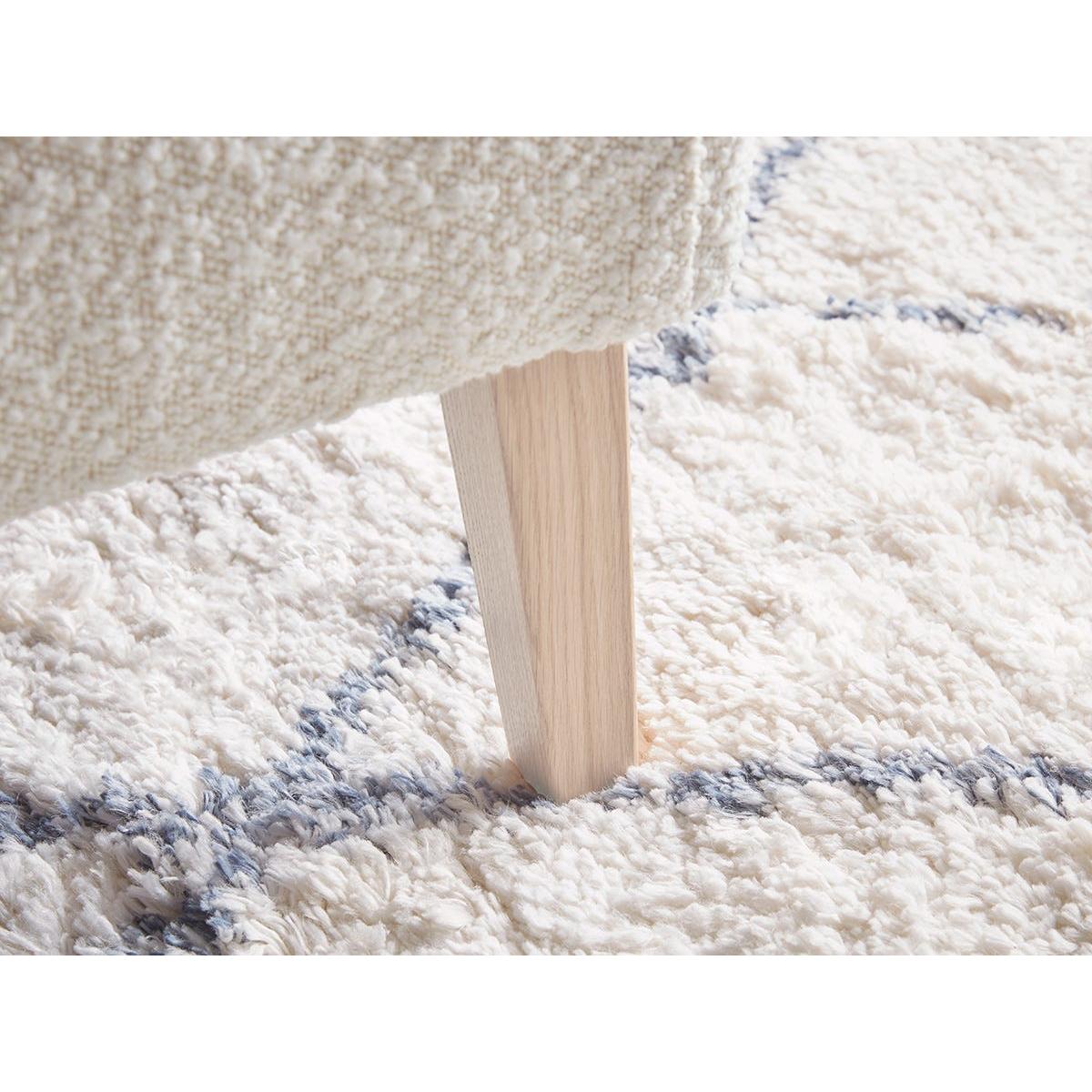 Channeling a fun retro feel, this lovingly crafted collection features tapered legs, wide and curvaceous winged backs and angular sloping arms. The Trosa sofa is a cosy and welcoming seat which will hug you into its enveloping form and provide a striking focal point in your living room. A pair of rectangular scatter cushions are included with this high back sofa for additional support. The Trosa range also includes an armchair and an ottoman. Pictured here in our Natural bouclé material, our Trosa collection can be upholstered in a choice of 34 distinctive shades and six fabrics to suit your style. Read our Upholstery FAQs View our full Upholstery Terms and Conditions