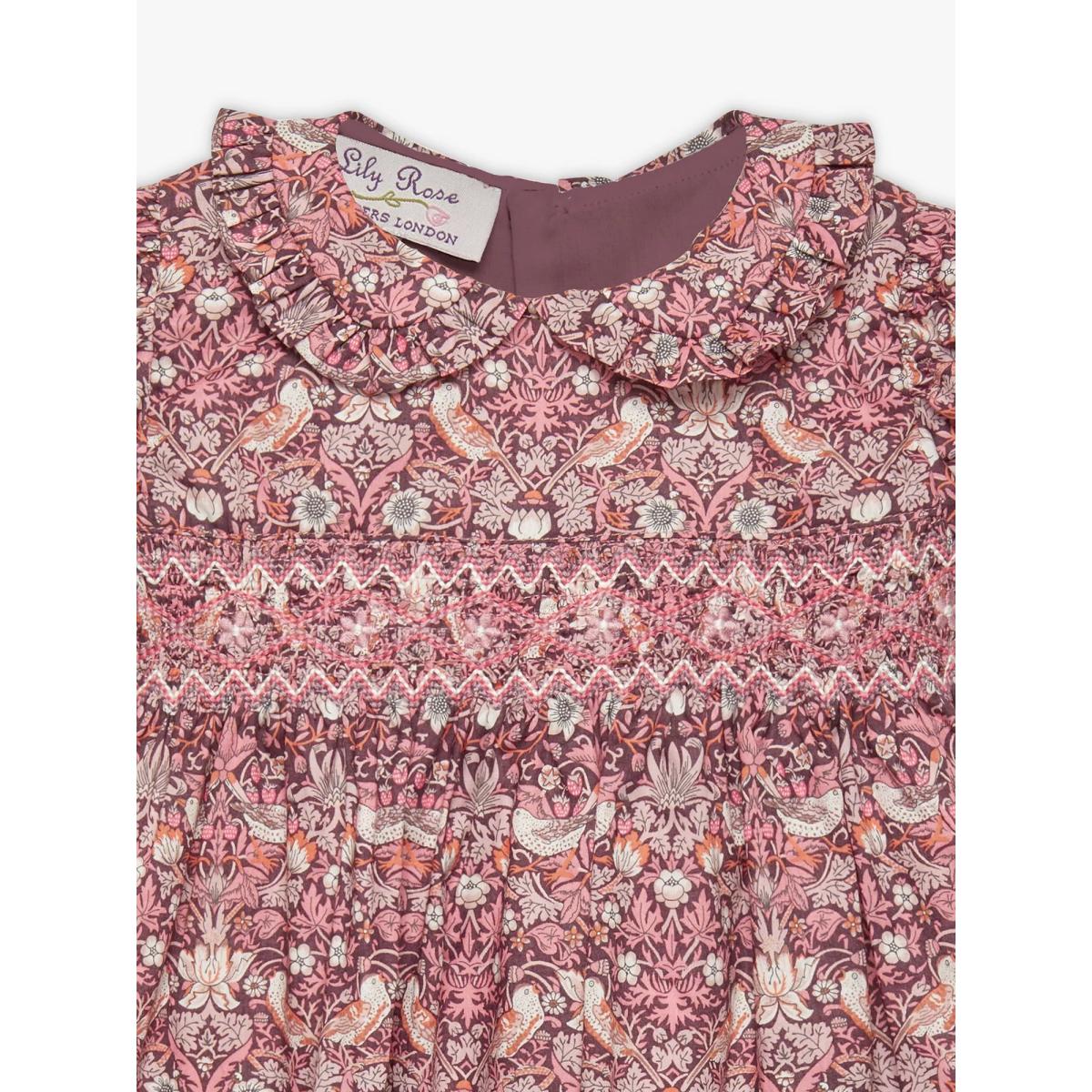 Trotters Baby Cotton Strawberry Thief Smocked Dress, Multi