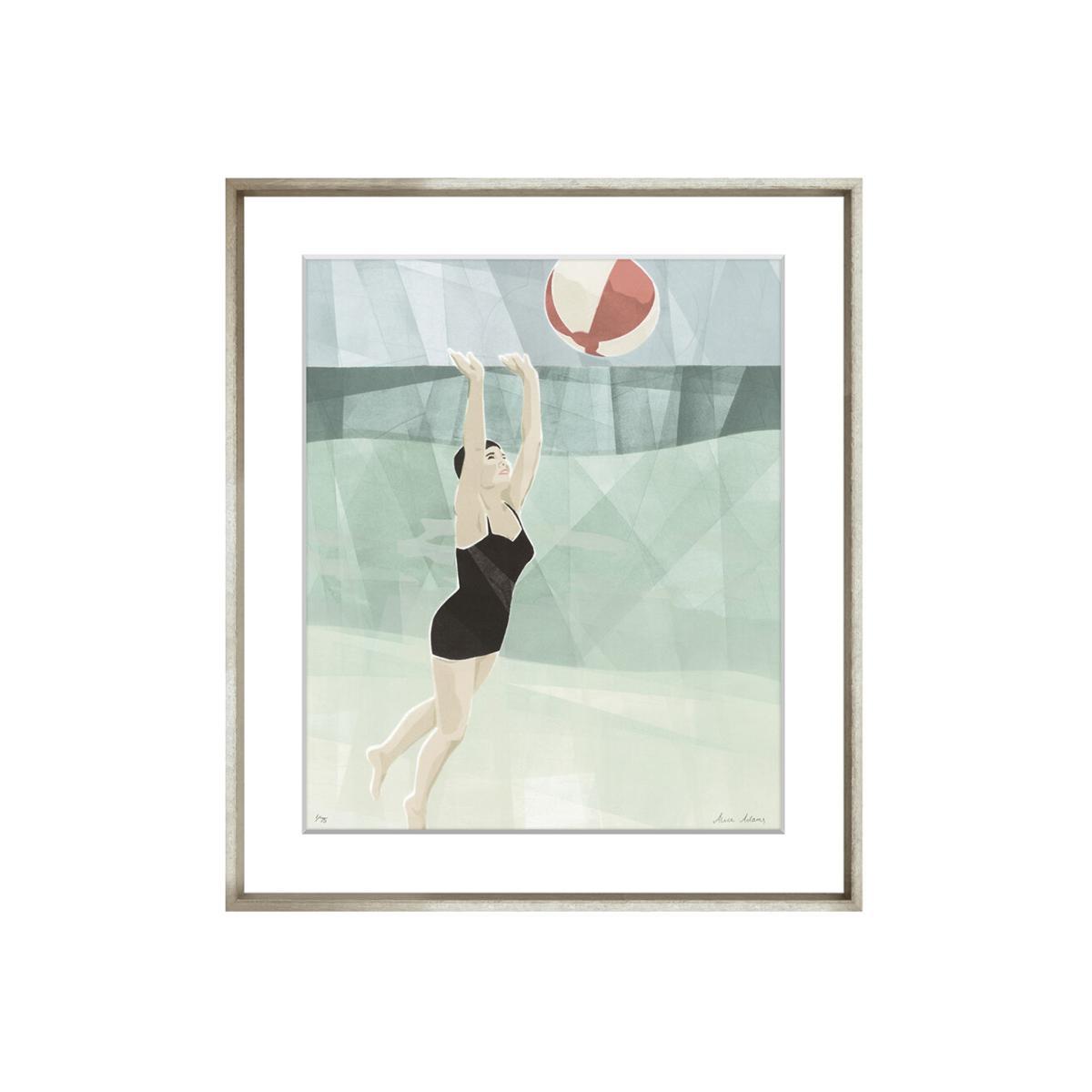 Bring a touch of summertime magic into your home with this framed print from Trowbridge Gallery. Printed onto 300gsm white rag watercolour paper, this print features a sun-drenched 1950s inspired beach scene of a woman with a beach ball by Alice Adams. Key features: * Material: white rag watercolour paper, wood * Dimensions: 48x58cm * 1950s inspired beach scene * By Alice Adams * 300gsm * Silver leaf frame * Giclee fine art print