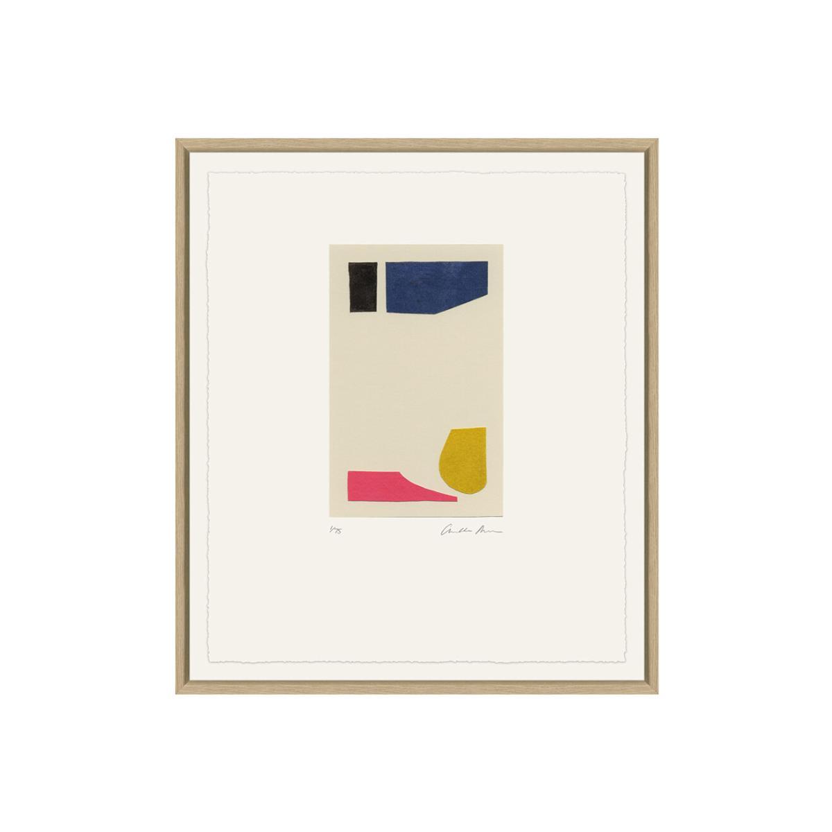 Add a pop of colour into your home with this framed print from Trowbridge Gallery. Printed onto 300gsm white rag watercolour paper, this giclee fine art print features an abstract collage design in bold tones by artist Charlotte Morgan. Key features: * Material: white rag watercolour paper, oak * Dimensions: 48x58cm * Abstract collage design * Pink, blue and yellow tones * 300gsm paper * Oak frame * Giclee fine art print * Signed by artist