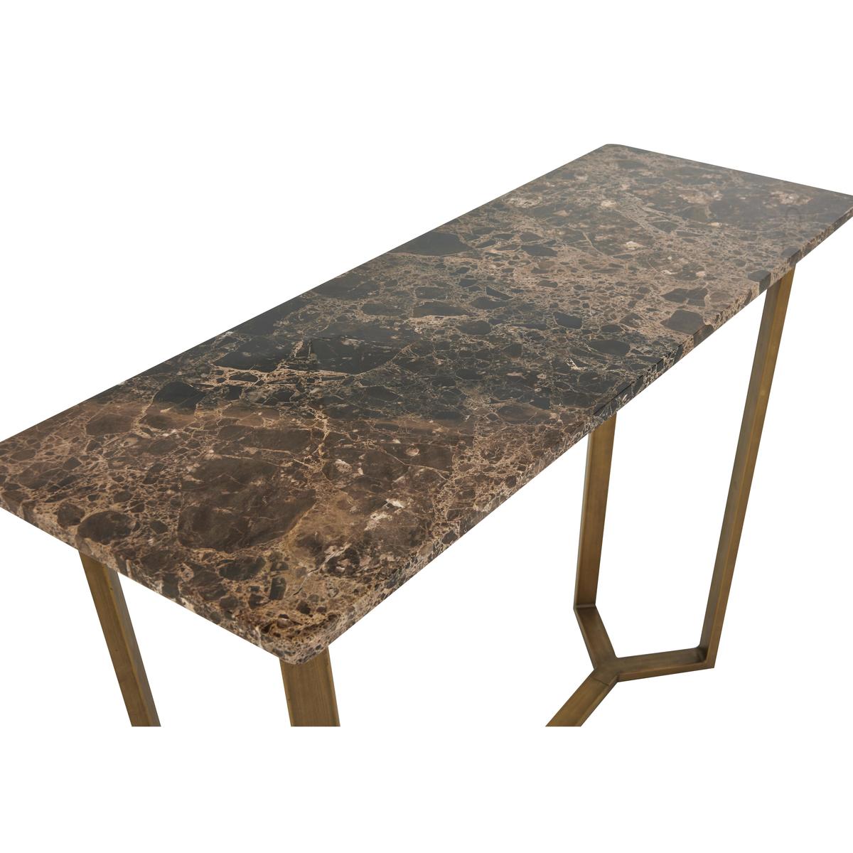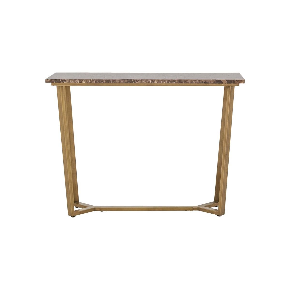 Tall, elegant and coolly contemporary, the Troy marble console table is a beautifully simple way to bring the opulence of real marble to any home. This versatile table, perfect for living rooms, hallways and dining rooms, has a stunning marble top. Choose darker brown Spanish marble with a tonally-rich grain of mocha, hazel and caramel shades or white Volkas marble with a natural grain in soft warm tones. Polished to perfection, the top rests on metal legs with a brushed bronzed finish. Legs are slightly angled and meet at a sturdy central base, a stylish and space-saving design feature. The mix of marble top and bronzed legs seen in the Troy marble console table is a feature of all the pieces in the compact Troy dining and occasional range. Choose from a selection of brown or white marble-topped coffee tables, end tables and dining tables.