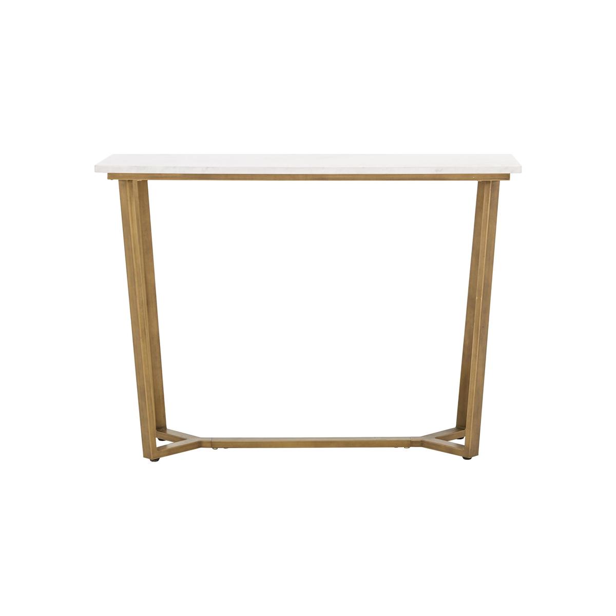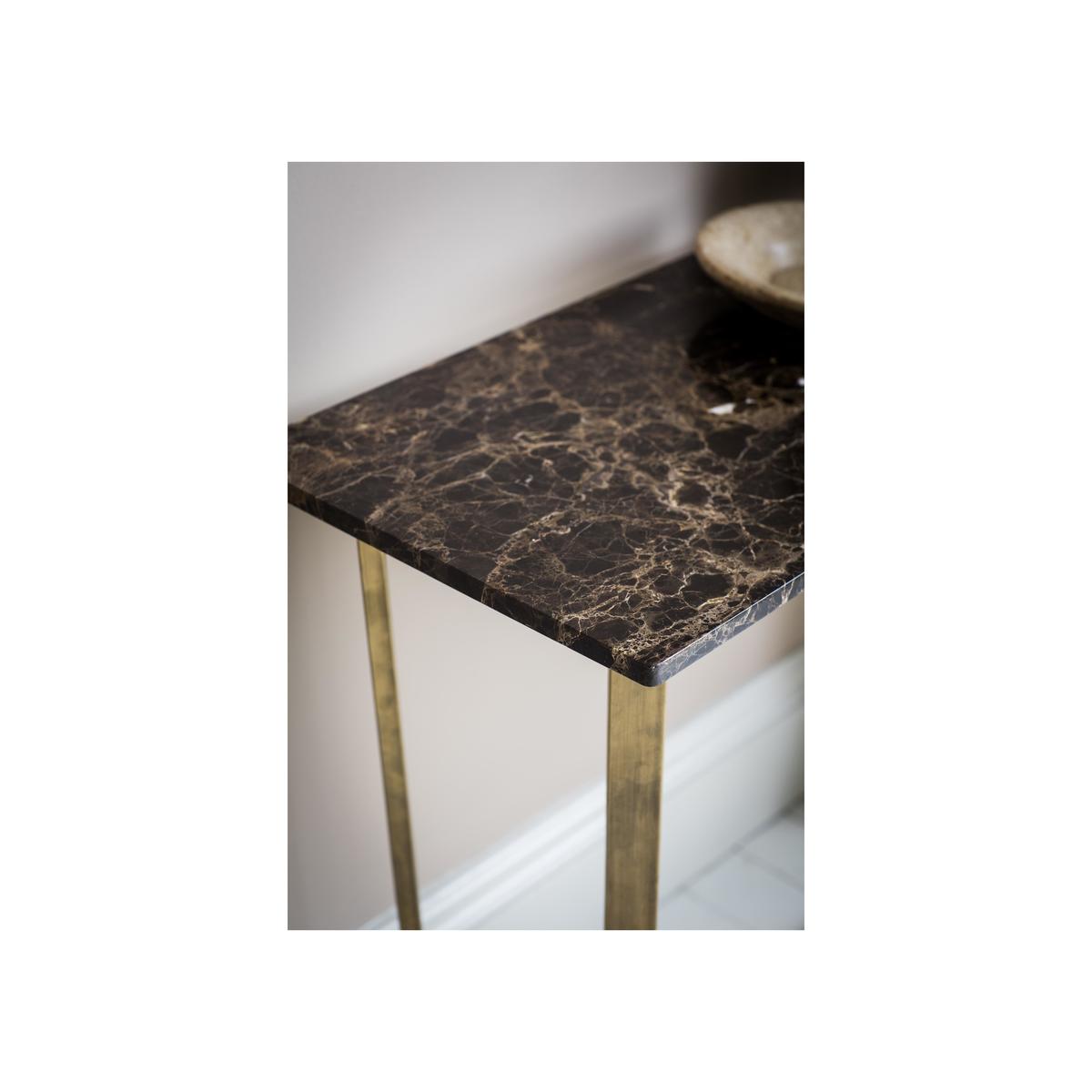 Since classical times, marble has been prized by emperors and monarchs for its unparalleled beauty, gorgeous patterning and flawlessly smooth finish. The Troy range of dining and occasional tables gives this most beautiful of natural materials a stylish contemporary look making it perfect for the on trend modern home. Tables are available in a choice of two different marble tops – brown Spanish marble and white Volkas marble – and are set on metal legs with a brushed bronze finish. The range includes lamp, coffee and console tables plus a distinctive supper table, perfect for casual dining, and a round dining table with coordinating chairs. Compact in size, the Troy range brings luxurious marble style to any home. Tall, elegant and coolly contemporary, the Troy marble console table is a beautifully simple way to bring the opulence of real marble to any home. This versatile table, perfect for living rooms, hallways and dining rooms, has a stunning marble top. Choose darker brown Spanish marble with a tonally-rich grain of mocha, hazel and caramel shades or white Volkas marble with a natural grain in soft warm tones. Polished to perfection, the top rests on metal legs with a brushed bronzed finish. Legs are slightly angled and meet at a sturdy central base, a stylish and space-saving design feature. The mix of marble top and bronzed legs seen in the Troy marble console table is a feature of all the pieces in the compact Troy dining and occasional range. Choose from a selection of brown or white marble-topped coffee tables, end tables and dining tables. WARNING!. Furniture can tip over unexpectedly and cause injury. This item shall be fixed to a wall using the anti-tip kit provided with the furniture. Be sure to use the correct wall fixings suitable for the walls in your home.