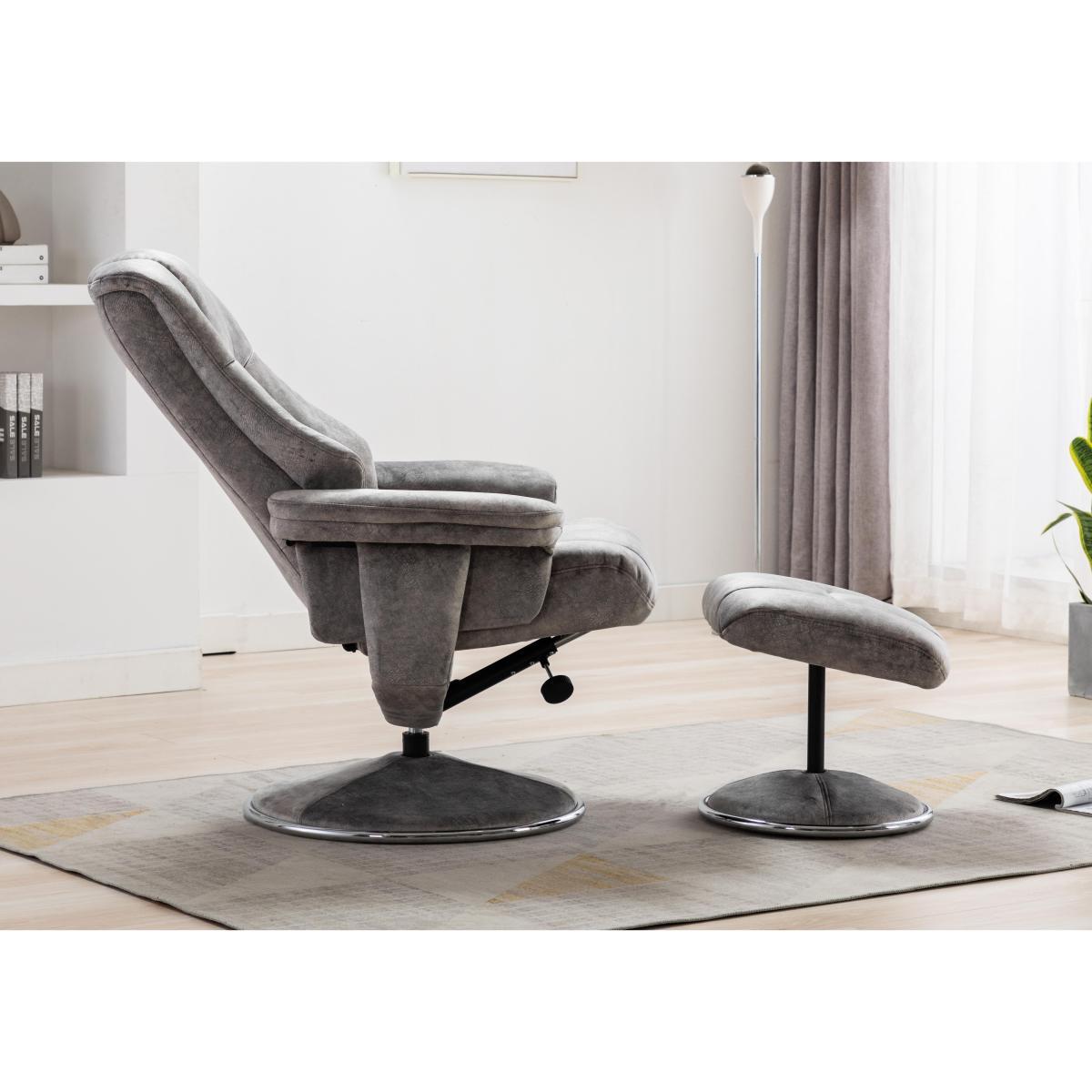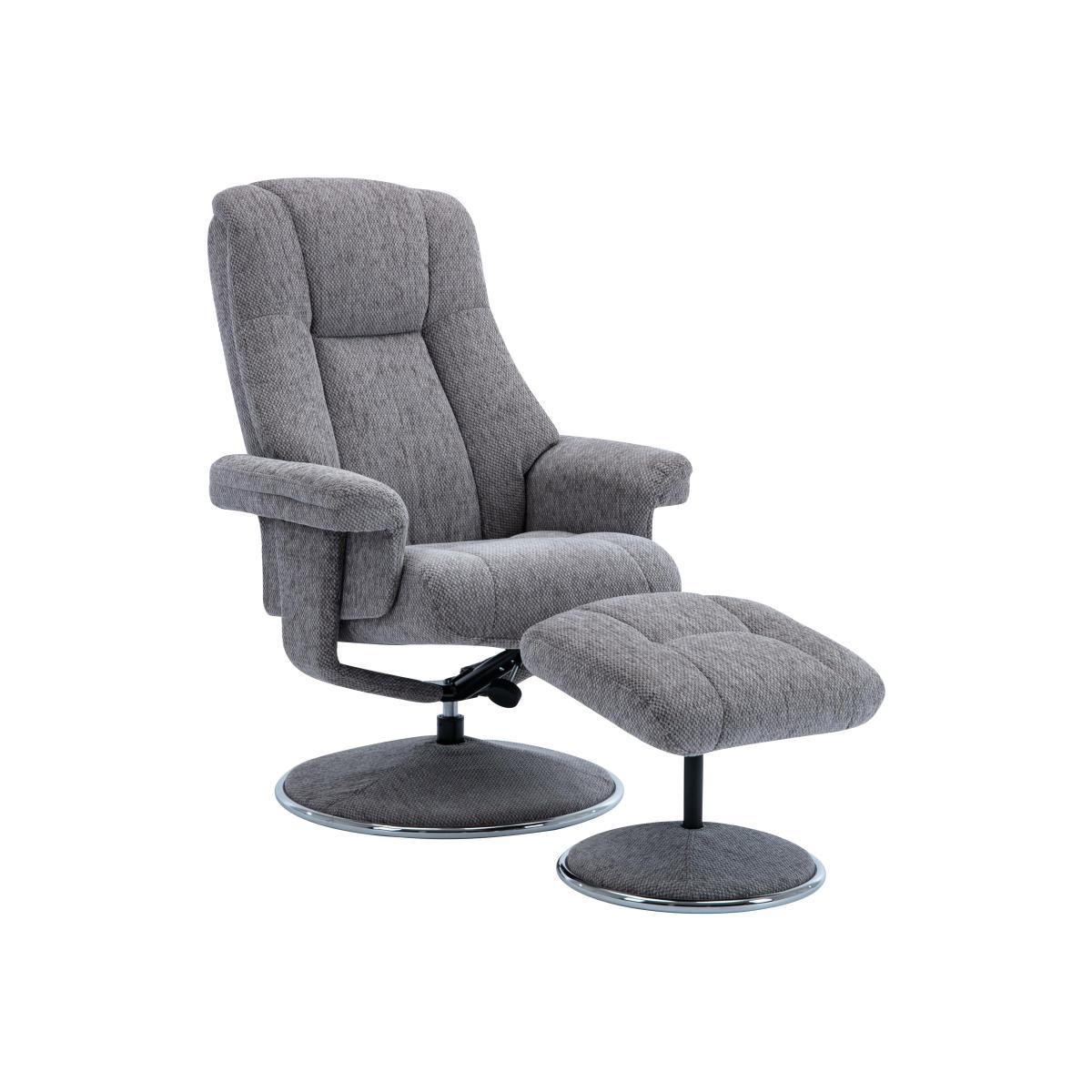 This product requires self-assembly. Whatever beautiful colour you choose, the Troyes fabric swivel recliner chair and stool will soon be your favourite place to relax and put your feet up. Why you’ll love it. This gorgeous chair comes in a wide choice of stunning colours. Generously cushioned, with a deep seat. High back, contoured foam cushioning, soft arm pads. Smooth manual recliner, 360° swivel. Soft-touch fabric upholstery. Chair and footstool have round bases in black metal and fabric. Bases have a polished chrome trim. What you need to know. Black, fabric and chrome finish bases. Metal frame with wooden arms. Foam-filled seats and backs. Some fabrics can show wear on areas of more use or in direct sunlight. Please read our. Upholstery care guide. For more advice.