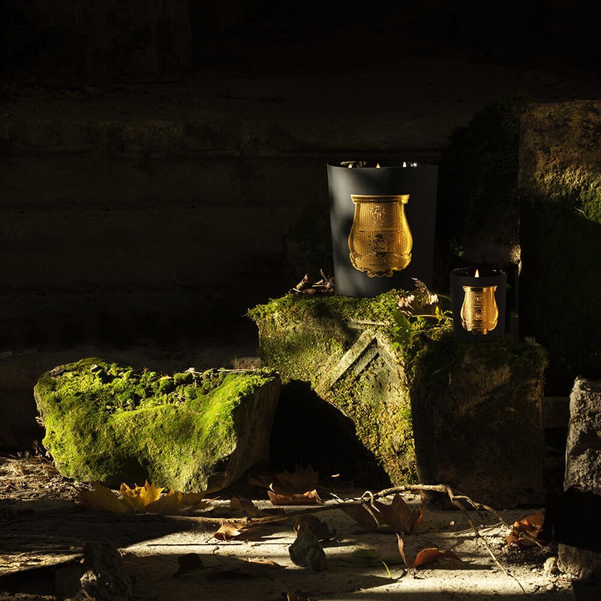 Add a theatrical note to your home with the Mary great candle from Trudon. In a large dramatic dark green glass vessel featuring Trudon's famous gilded emblem, this luminously fragrant candle is inspired by the fantastical world of the author Mary Shelley. Spicy top notes of cardamom, juniper and pepper hint at exotic travel, blending seamlessly with woody heart notes of cedarwood, papyrus, patchouli and gaiac wood. Finally, a base of labdanum and moss releases a soft amber and tobacco perfume, reminiscent of scents found in the 19th century. This decadent candle is the perfect addition to a grand entrance hall.