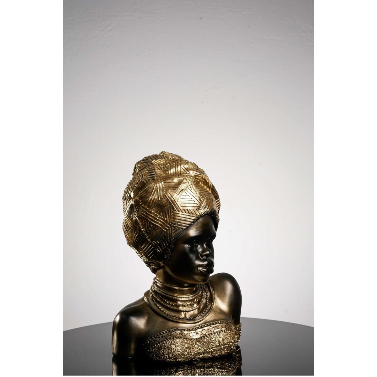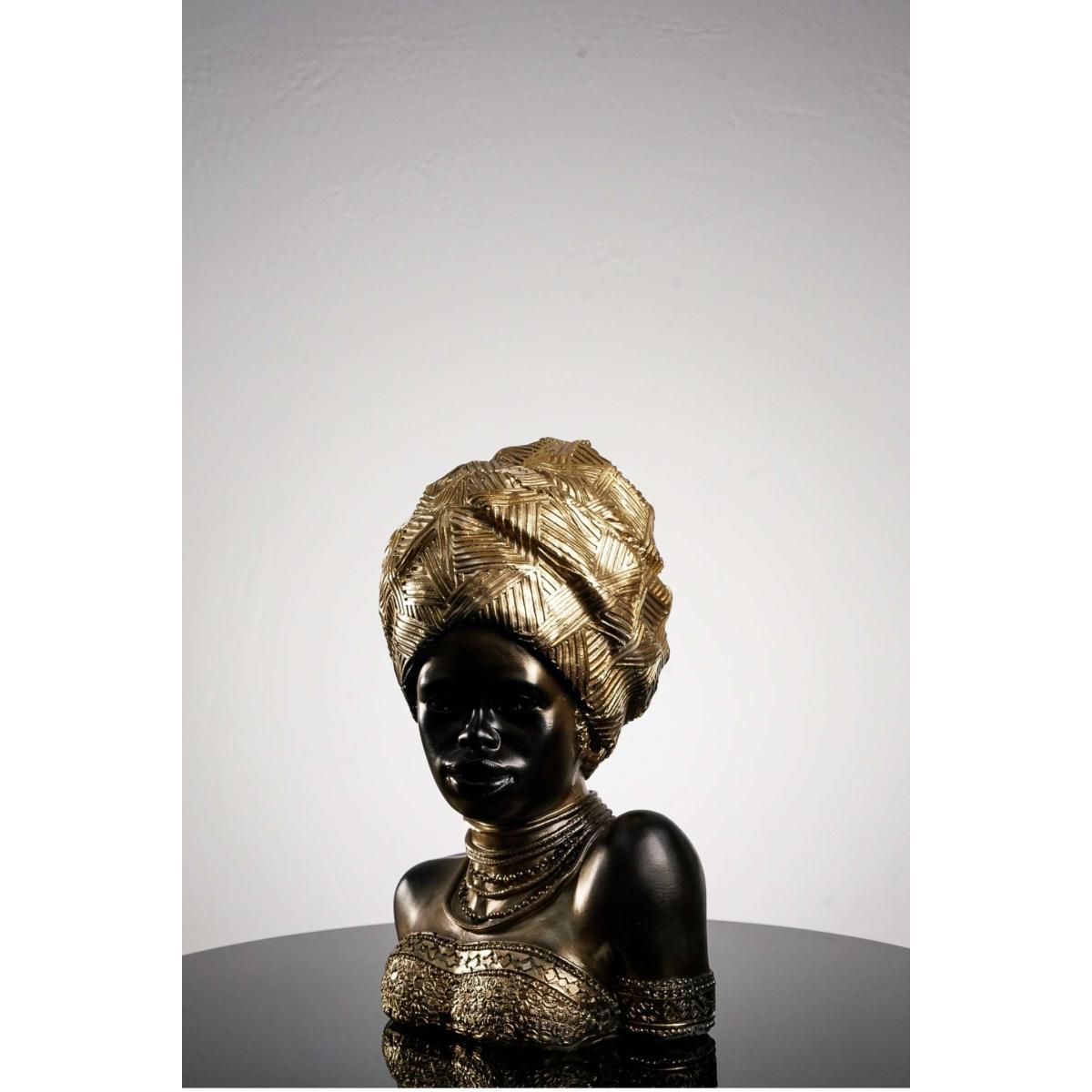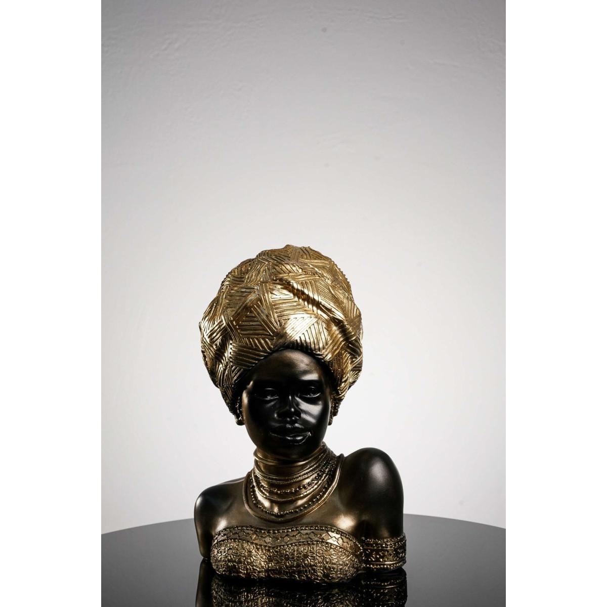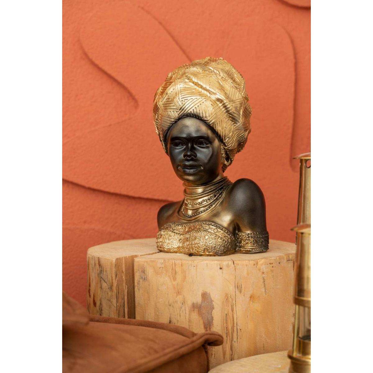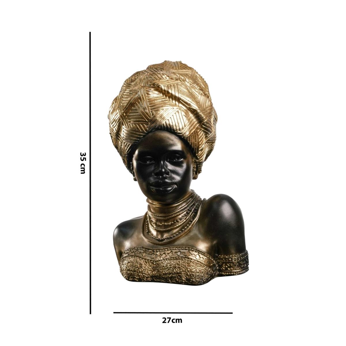 Honor Africa with this True African Beauty sculpture. Embrace beauty with this African girl bust. Design and created to capture the beauty of women from this continent, this sculpture offers intricate details and feminine charm. In particular, the delicate details on the woman’s head wrap. These details will enchant and impress all guests to your home. This bust is complete with a warm paint finish and delicate color speckles. Created by hand for an authentic artist look, this bust is made from high-quality materials and talent.
