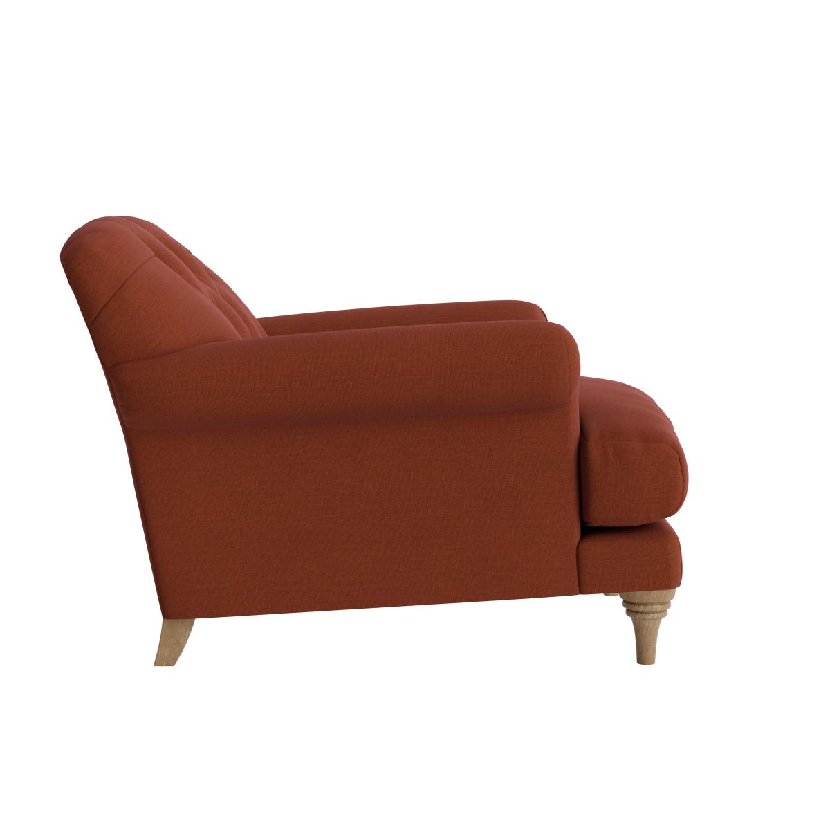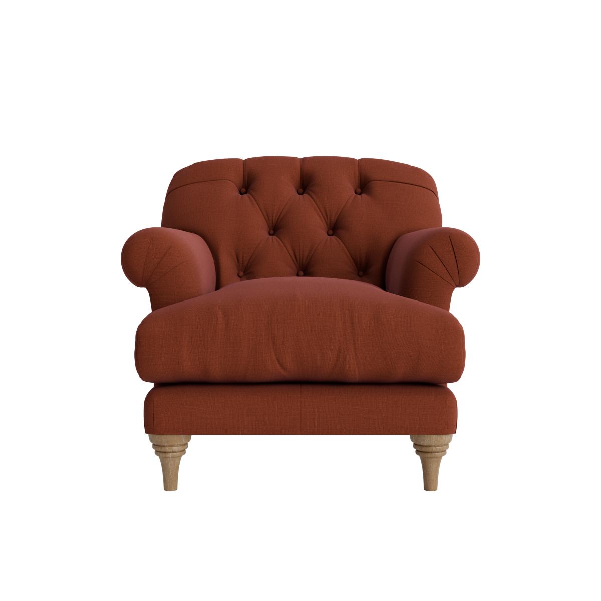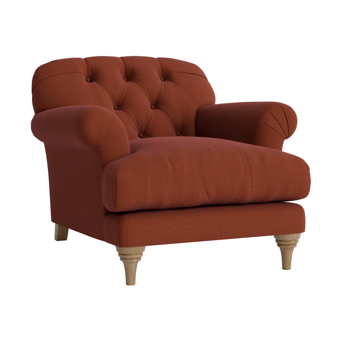 I love this armchair for its timeless charm and inviting silhouette. Its warm, earthy tone makes it incredibly versatile, working well in both traditional and contemporary interiors. It’s an excellent choice for cosy living rooms or reading nooks, especially when styled with layered textures like soft throws or patterned cushions. For practical styling, I recommend pairing it with wooden or brass accents and keeping surrounding furniture in neutral shades to let the chair stand out. Its plush upholstery and classic design ensure it remains stylish over time, adding a touch of warmth and comfort to any space.