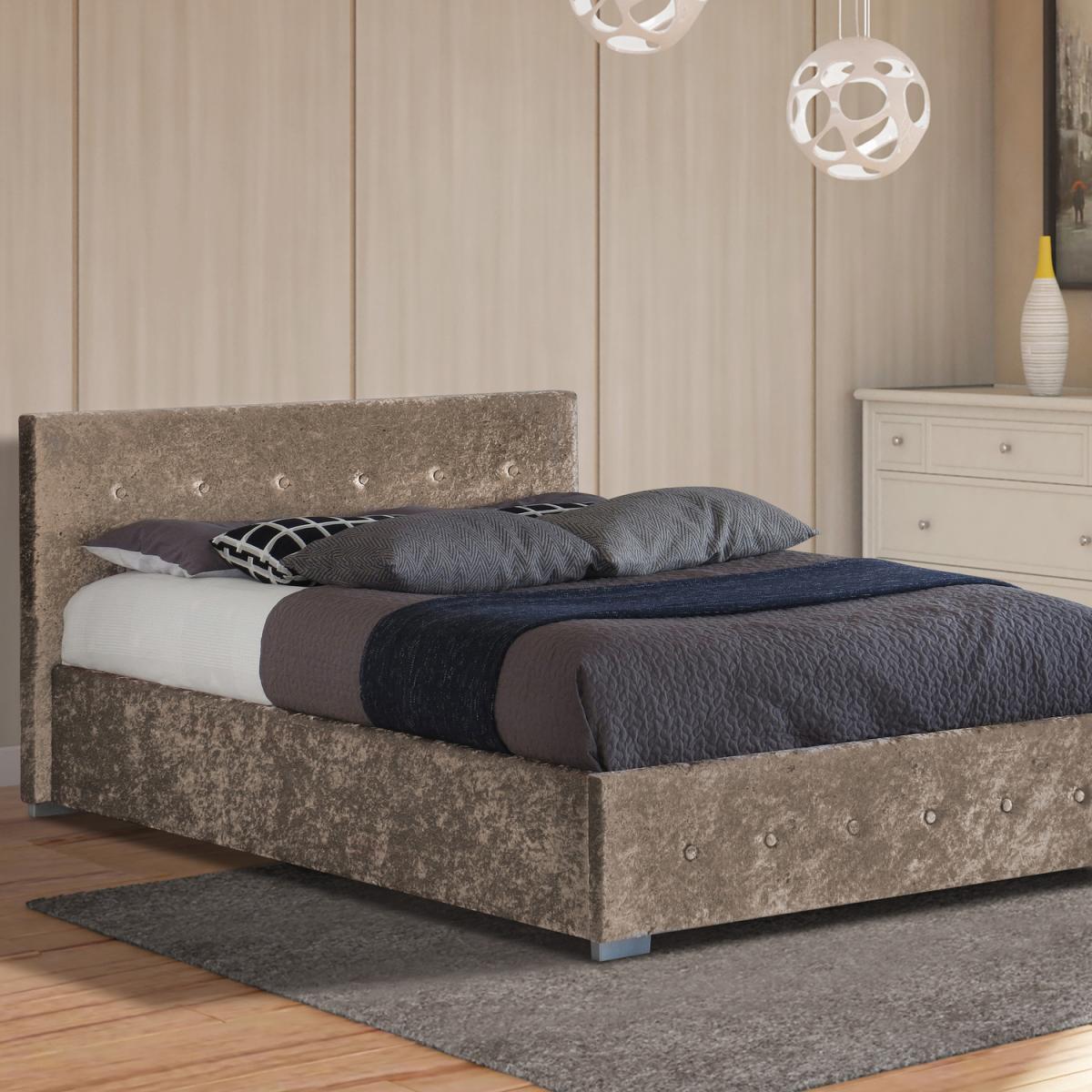 Truffle Crushed Velvet Ottoman Storage Gaslift Bedframe - Single