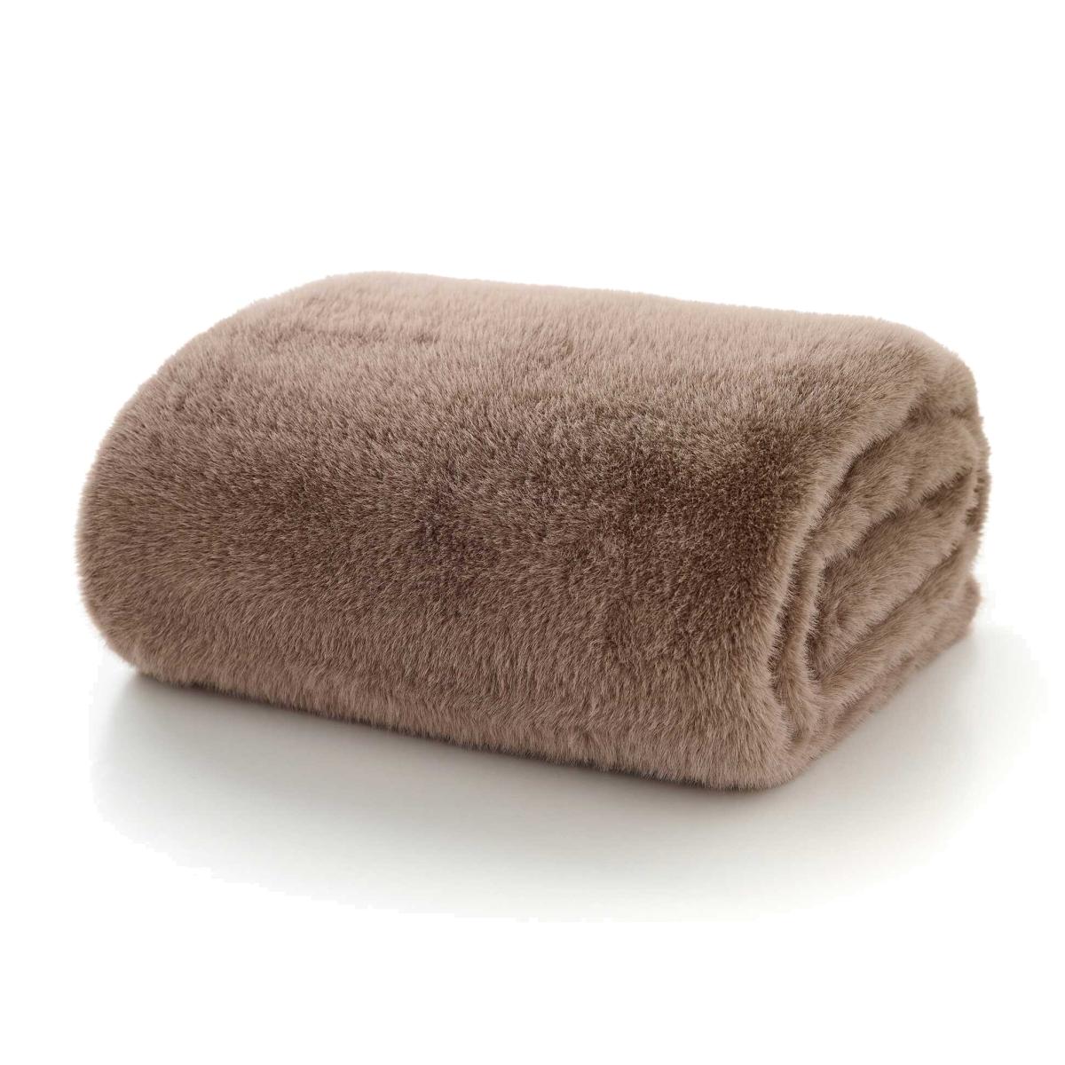 Truffle Faux Fur Throw Blanket, Brown Polyester | Barker & Stonehouse