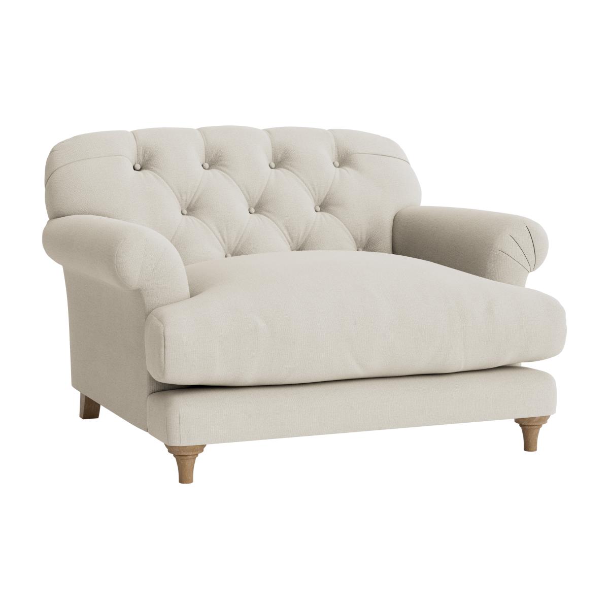 Buttons, pleats and the comfiest of seats. Not only is this loveseat a right tasty number, but it has the look of a bit of a find. Truffle by name, truffle by nature.