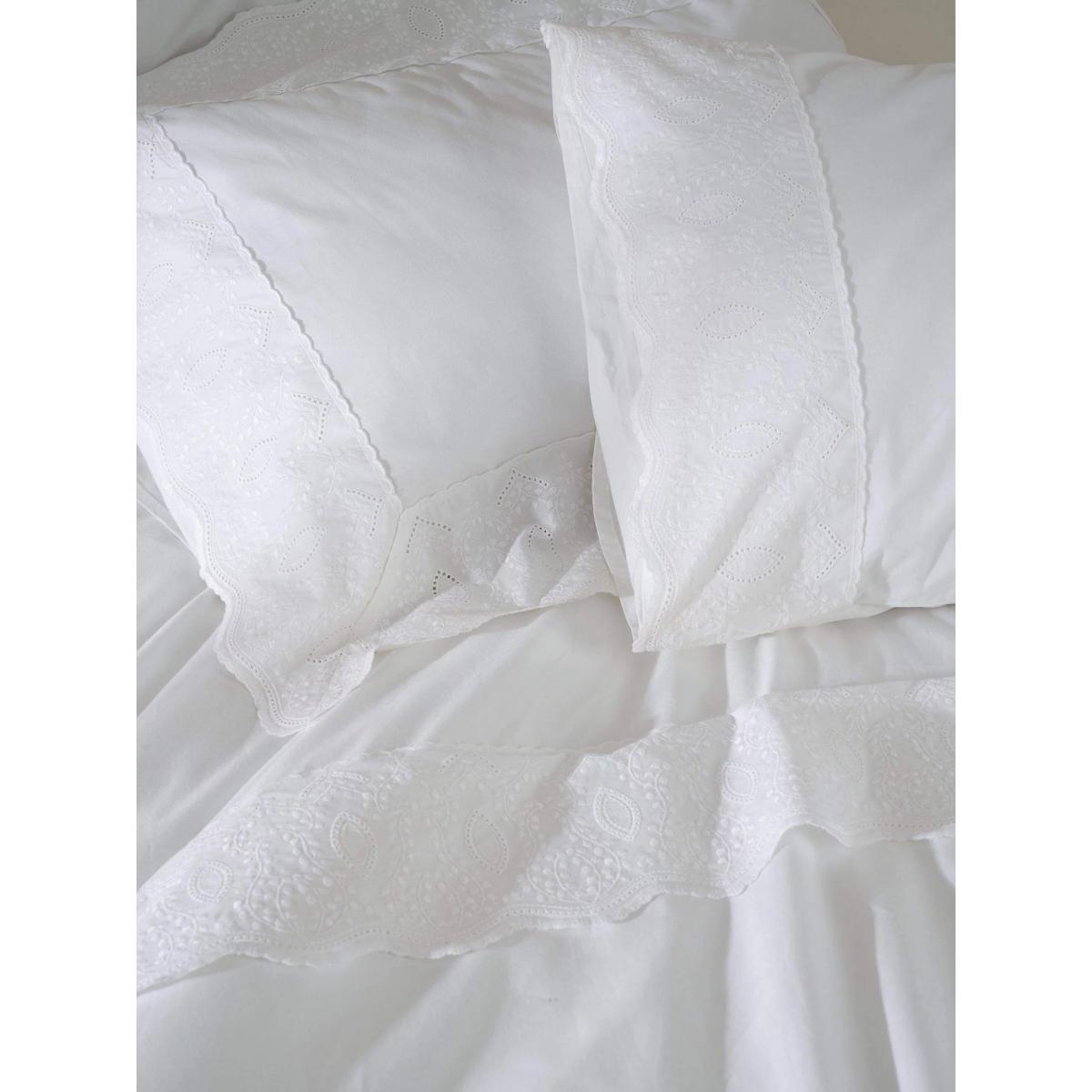 This in-house classic white embroidered cotton bedding is the ultimate finish to your stylish bedroom. The cotton percale offers the perfect everyday bedding - crisp, light and breathable. Made with matte finish percale that just gets better and better with every wash. Please note: pillowcases sold separately in pairs. Packaged in matching cotton bag. Bedding sizes To fit duvet/pillow size (cm) Standard pillowcase, L75 x W50cm Oxford pillowcase, L75 x W50cm (excluding trim) Double duvet cover, L200 x W200cm King duvet cover, L220 x W225cm Super king duvet cover, L220 x W260cm