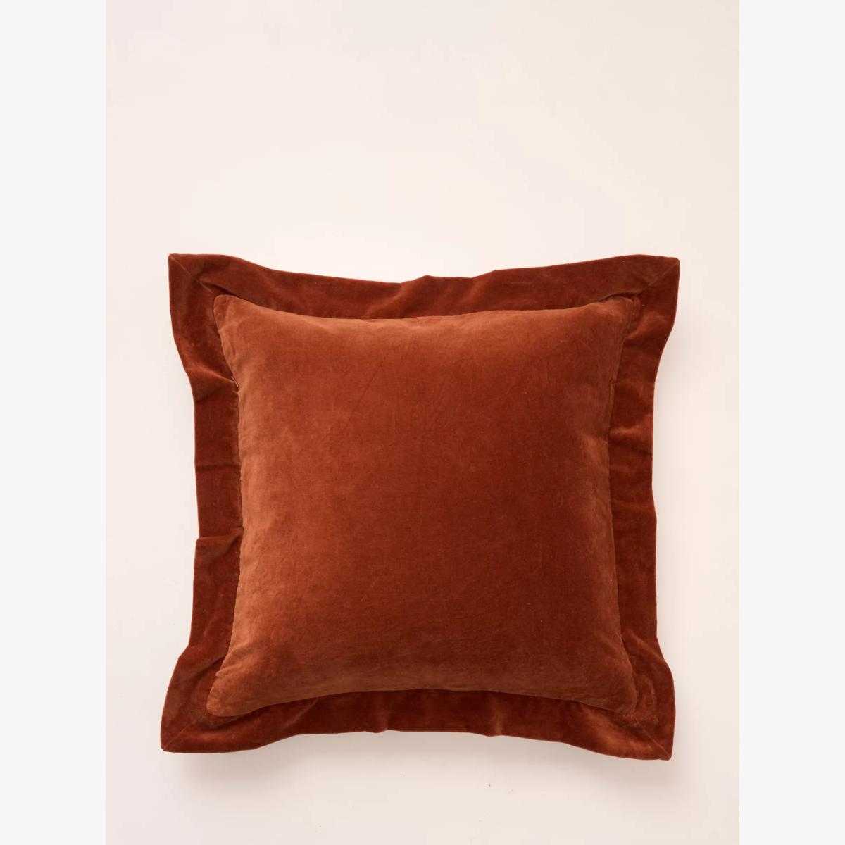 In a beautifully soft cotton velvet, this cushion comes with a frill edge that effortlessly adds texture.