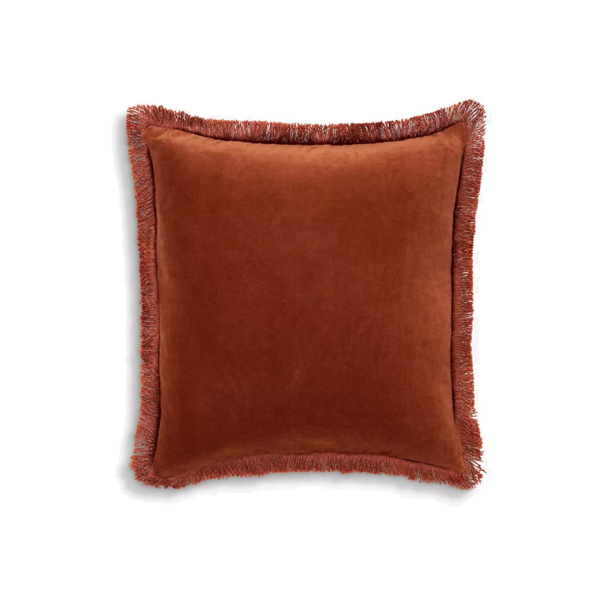 I love this fringed square velvet cushion for adding texture and warmth to both contemporary and traditional interiors. Its rich, earthy tone works beautifully in neutral schemes, but it also holds up well in more vibrant settings as a grounding piece. The fringed detail lends a relaxed, tactile quality, making it perfect for lounge chairs or sofa styling. Practical tip: mix it with silk or linen cushions for contrast, and consider placing it in a layered arrangement to create a inviting, curated look. Its plush velvet fabric makes it suitable for cosy living rooms or bedrooms where comfort and style are equally important.