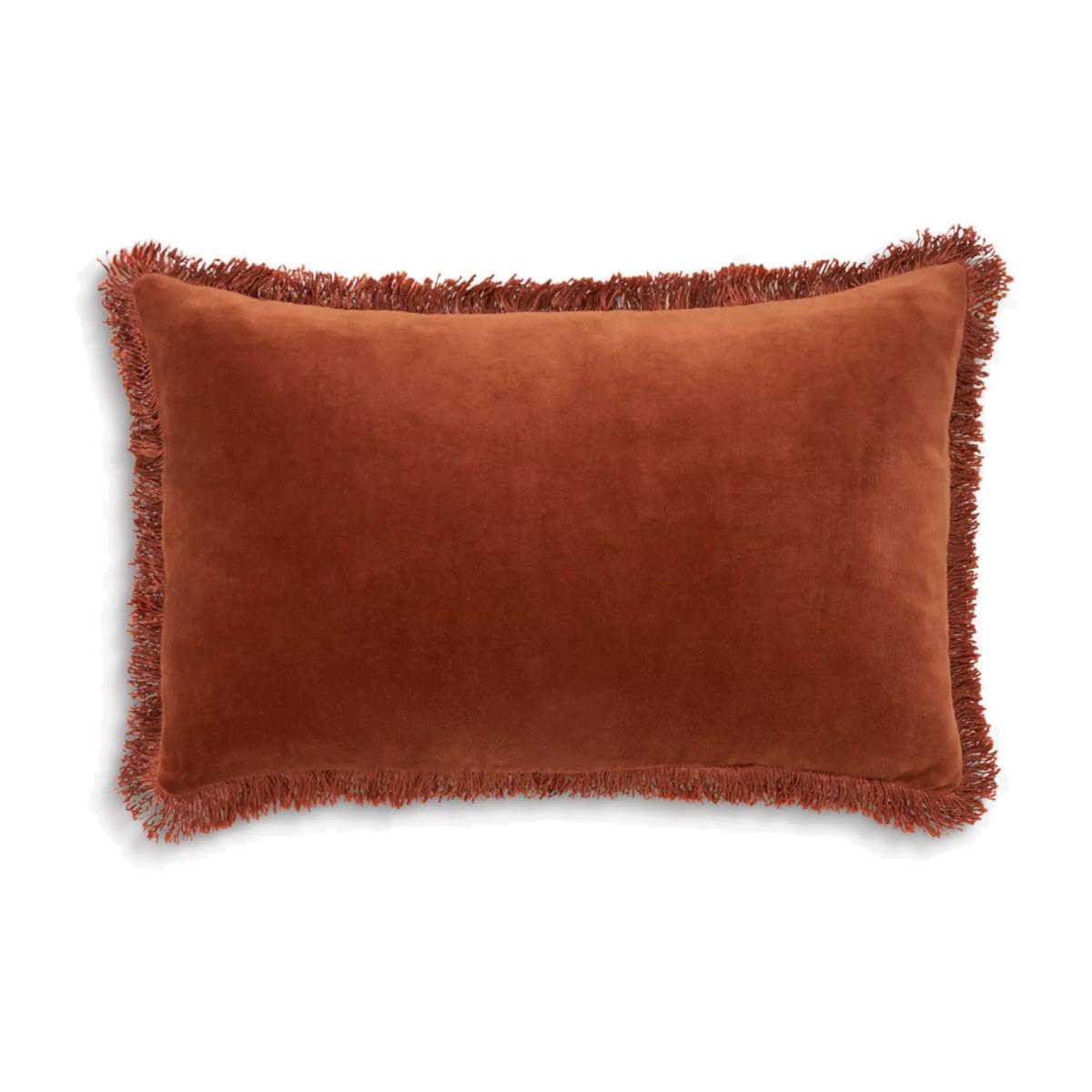 This fringed velvet cushion is a great way to introduce texture and warmth into a sofa or bed setting. I love its understated richness, making it versatile for both contemporary and traditional interiors. It works particularly well layered with other cushions in contrasting textures, like linen or wool, to add depth. Practical styling tips include pairing it with neutral tones for a sophisticated look, or mixing in jewel tones for more vibrancy. Its fringed edge offers a subtle decorative detail that can soften the overall aesthetic without overpowering other design elements. Overall, it’s a stylish yet practical choice for adding comfort and visual interest to any lounging area.