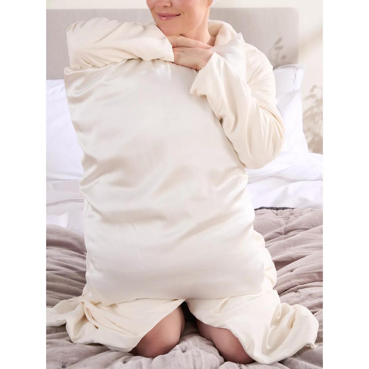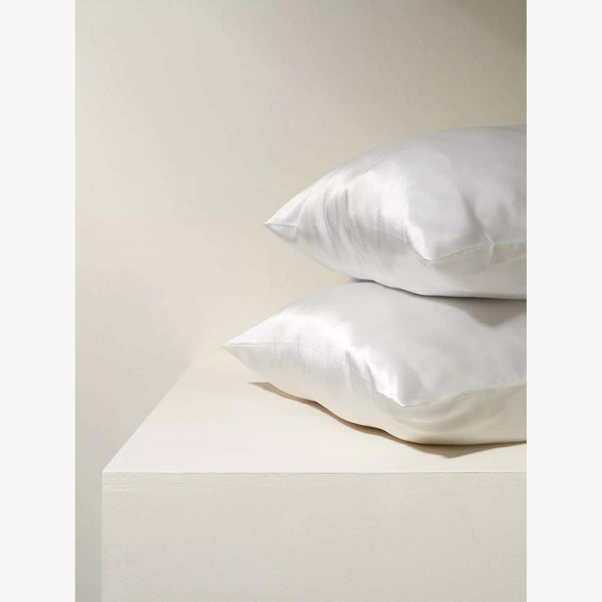 Introducing the ultimate addition to Truly's bedding range: a pair of silk pillowcases in classic ivory. Silk is renowned for its ability to help hair and skin retain moisture but is thought to help prevent wrinkles too. It has natural hypoallergenic properties and temperature-regulating abilities and is especially known for its excellent strength. The perfect formula for a great night's sleep. In a classic standard style, this set of two pillowcases will fit into any bedroom and add a touch of luxury to your sleep routine. It comes in a handy little dust bag. Made from pure 16 momme silk.
