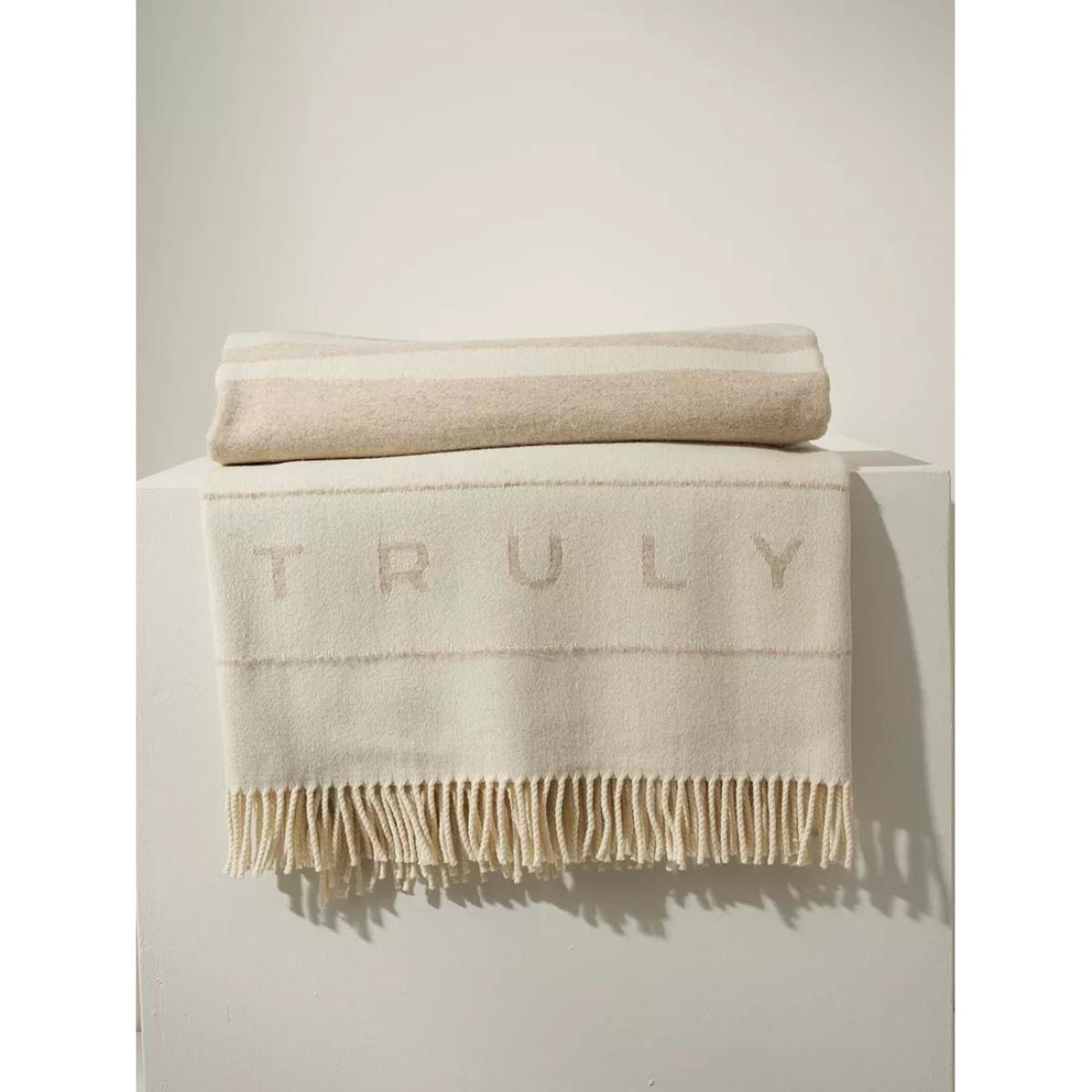 Beautifully soft, this versatile Truly blanket is ideal for folding and draping over your favourite armchair. Take it with you on trips to the beach and picnics in the park. It's woven in the UK from a woollen blend for warmth, with tassels for texture.